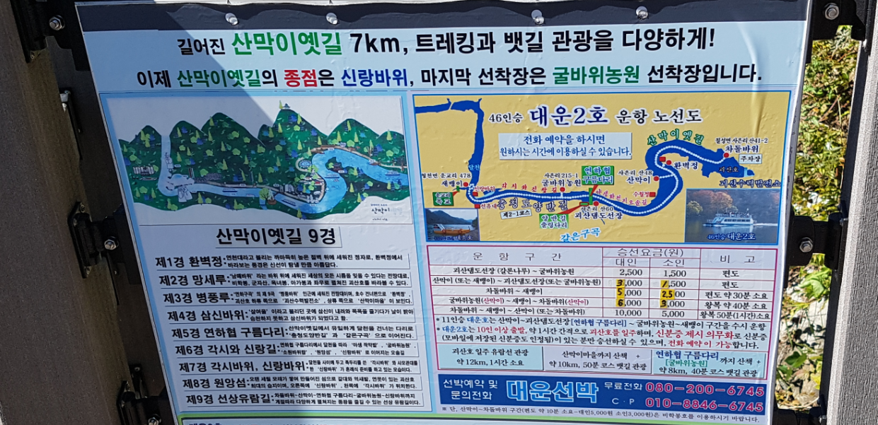 괴산에 주요 관광명소의 하나인 산막이옛길이 전국적으로 알려지면서 주말에는 1일 10,000여명 관광객이 찾고 있다.