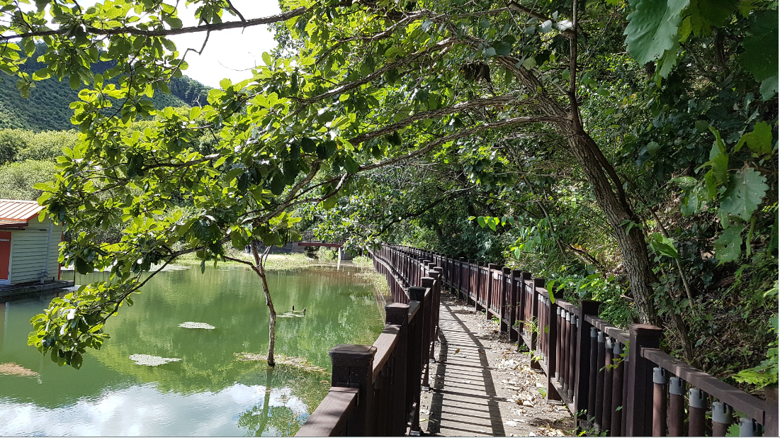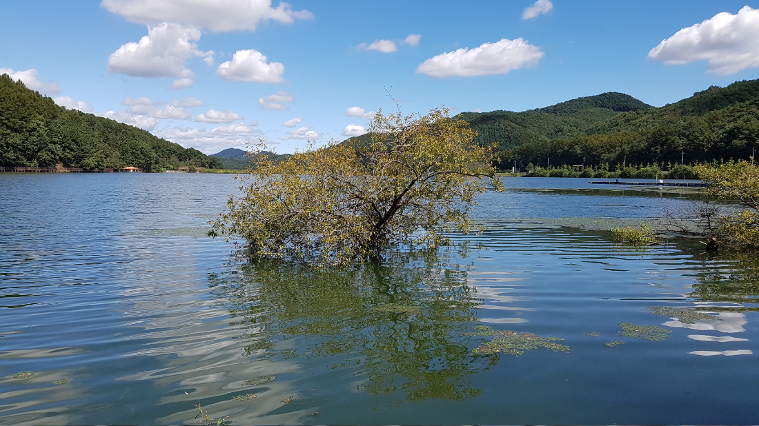 충북 괴산군 문광면 양곡리에 자리한 작은 저수지임에도 많은 관광객이 찾는 곳이다.