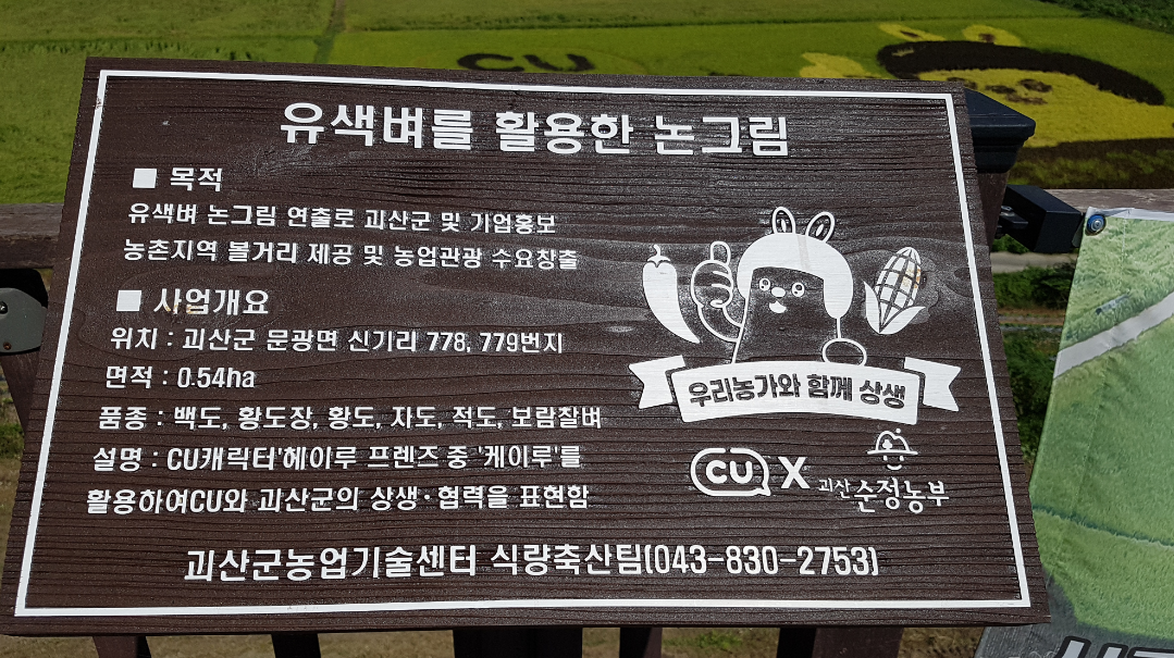 벼가 자라는 생육 상태에 따라 보는 느낌이 달라지는 살아있는 지역 광고매체로 적극 활용되고 있다.