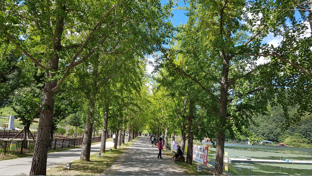 은행나무길은 이 마을에 살고있던 주민이 1987년 200그루의 은행나무를 기증하여 마을주민들이 식재하였으며, 지금은 이 마을의 명소가 되었고, 멋진 포토존이 있어서 계절에 관계없이 은행나무의 모습을 촬영할 수 있다.