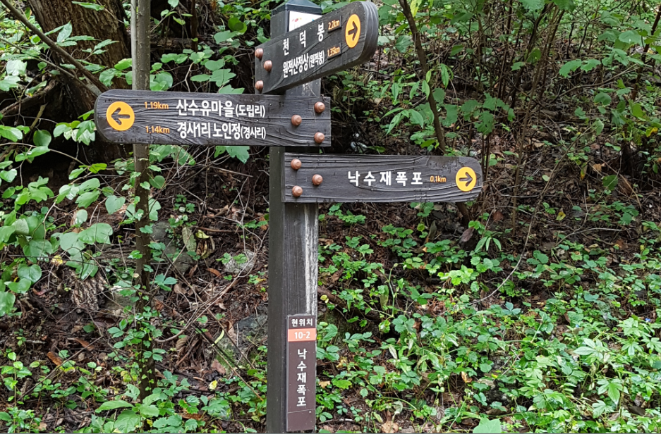 이 산의 명소로는 주봉인 천덕봉 기슭에 낙수제라는 폭포가 있으며, 이천시 백사면의 도립리와 경사리, 송말리 등에는 매년 4월이 되면 산수유꽃이 만발하고, 11월에는 선홍색 산수유 열매가 그 윤기를 발하여 이 아름다운 정경을 화폭에 담으려는 화가들과 가족 관광객들이 많이 찾고 있다.