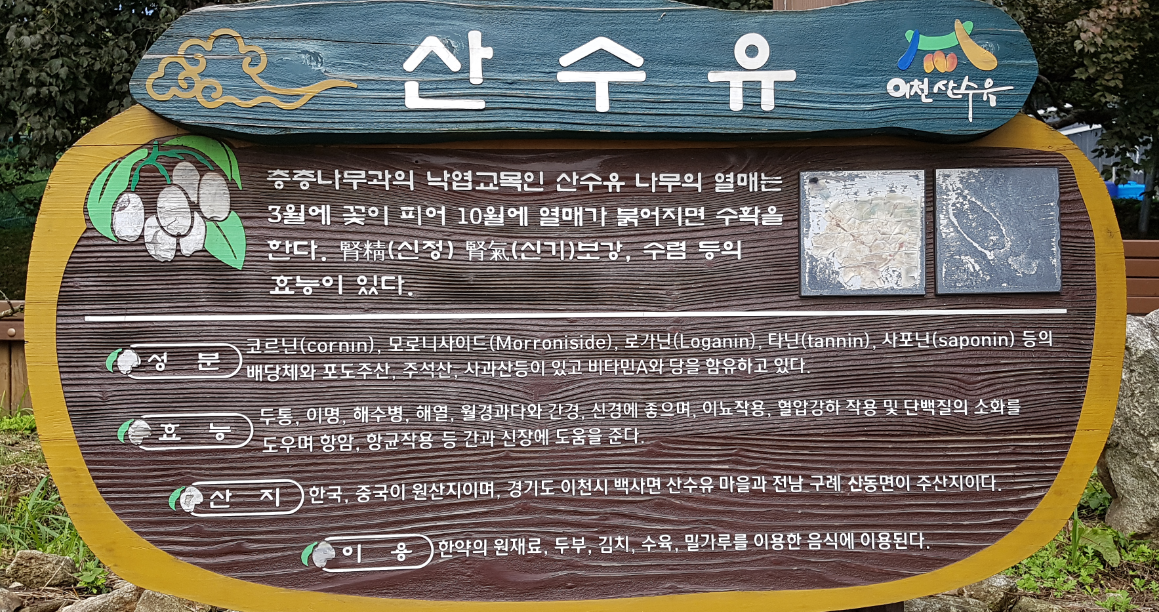 일대에 산수유가 많은 것은 이천에서 최고 높은 원적산(643m)이 병풍처럼 북풍을 막아줘 다른 곳보다 기온이 다소 높기 때문.여기에 산자락의 척박한 땅도 생명력이 좋은 산수유에게는 물빠짐이 잘되는 호조건으로 작용했다.수령 100년 내외의 산수유가 8000여그루 자라고 있으며, 2000년부터 이천시에서 가로변 등에 식재한 10년생 산수유 숫자도 7000그루를 넘어섰다.