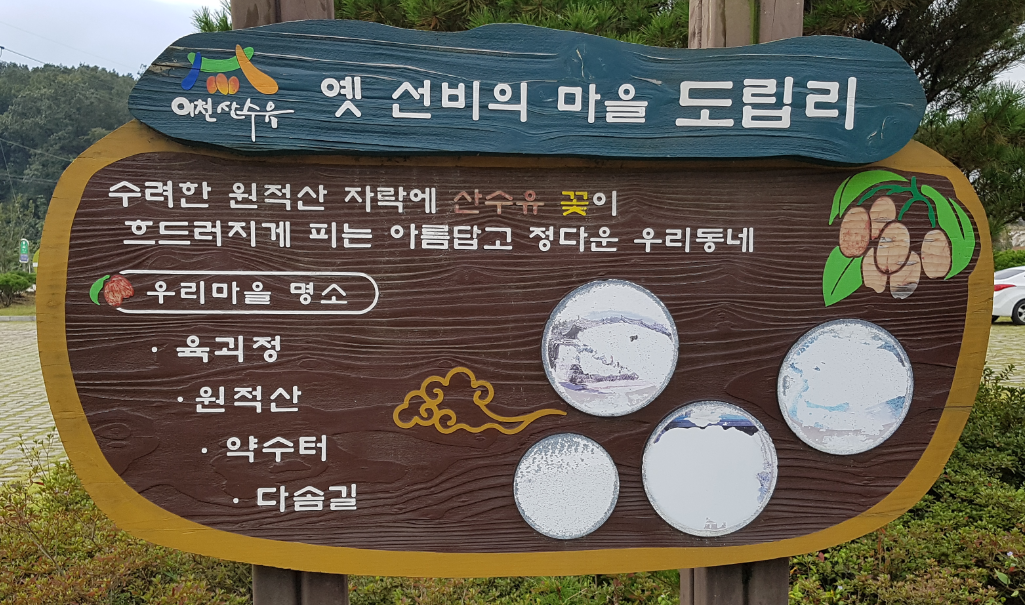 도립리 주행사장 부근에 위치한 육괴정과 수령 5백년의 느티나무를 배경으로 산수유를 즐기는 것도 중요한 감상포인트. 육괴정은 중종때 기묘사화를 피해 낙향한 개혁파 선비 6명이 우의를 나눴다는 정자로, 이곳에서 원적산자락의 산수유 군락지를 바라보면 선비를 상징하는 산수유의 노랑 채도가 더욱 돋보인다.