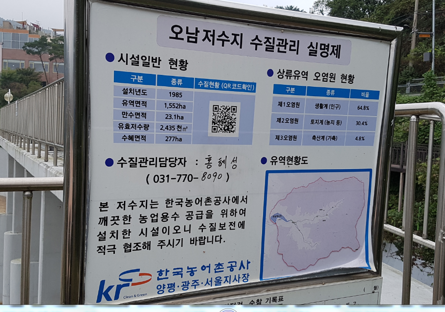 한국농어촌공사는 지역주민뿐 아니라 관광객들에게도 사랑받는 오남저수지를 관광명소로 만들기 위해 '오남저수지 공원화사업'에 착수, 2008년 12월에 저수지 남쪽 1.6㎞의 산책로를 완성하는 제1단계 사업을 완공했으며, 저수지 북쪽 수변 구간을 공원화하기 위한 제2단계 사업도 추진하여 총 3.13km의 둘레길을 조성하였다.