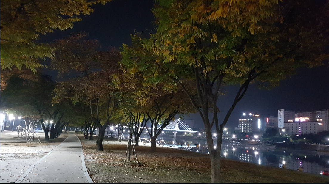 가을에 산책하기 좋은 금호강, 동촌 해맞이다리의 밤 풍경이다.