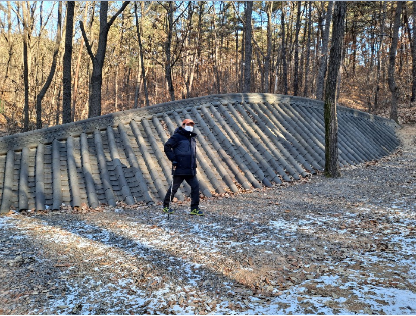 걷다보면 땅에 묻힌 것 같은 거대한 기와지붕 모양의 작품을 발견한다. 이승택 작가의 〈용의 꼬리〉다. 작가는 작품이 설치된 삼성산을 큰 용으로 간주했다. 그리고 작품은 용의 꼬리에 해당하는 셈이다. 작품에 쓰인 1500여 장의 기와는 용의 비늘을 연상케 한다.