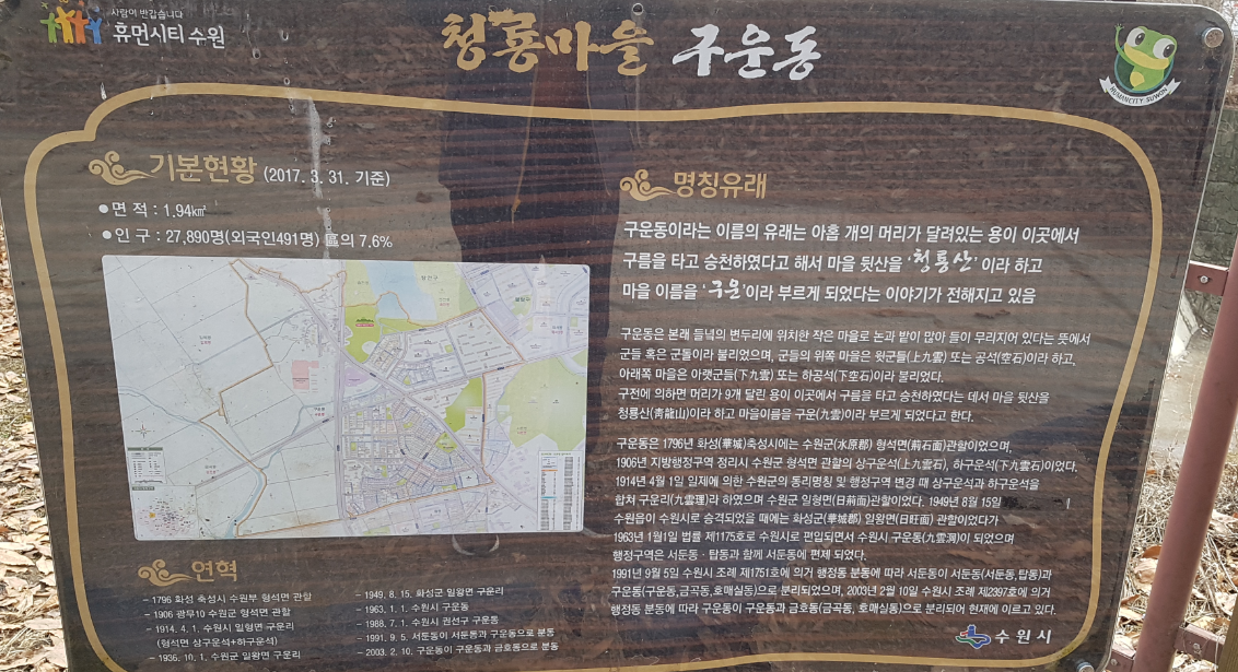 구운동은 본래 들녘에 있는 작은 마을로, 구전에 의하면 머리가 아홉 개 달린 용(九頭龍)이 구름을 타고 하늘로 올라갔다고 하여 마을 뒷산을 청룡산이라 하고 마을을 구운이라고 부르게 되었다고 한다. 일명 '군들[野]'이라고도 한다. 크게 상구운과 하구운으로 나뉘며, 하구운에는 주공주택단지가 들어서 있다.