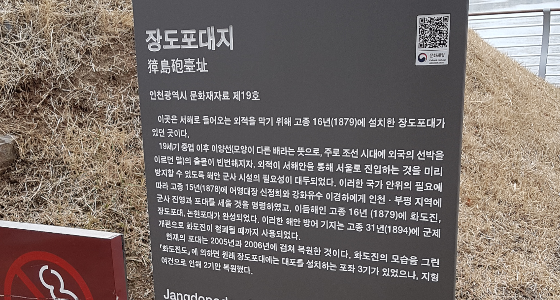 장도포대는 조선 고종16년(1879)개항기때 인천으로 진입하는 이양선을 막기 위해 화도진을 구축할 당시 축조된 포대중 하나로 수인선 건설 당시 일제의 의해 소실되었으나 지역의 소중한 문화자원을 보존하고 역사교육의 현장으로 활용하고자 인천광역시 및 남동구에서 2006년에 복원 및 관리하고 있다.