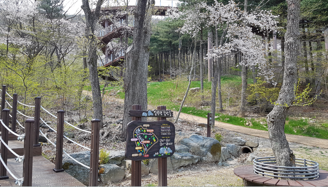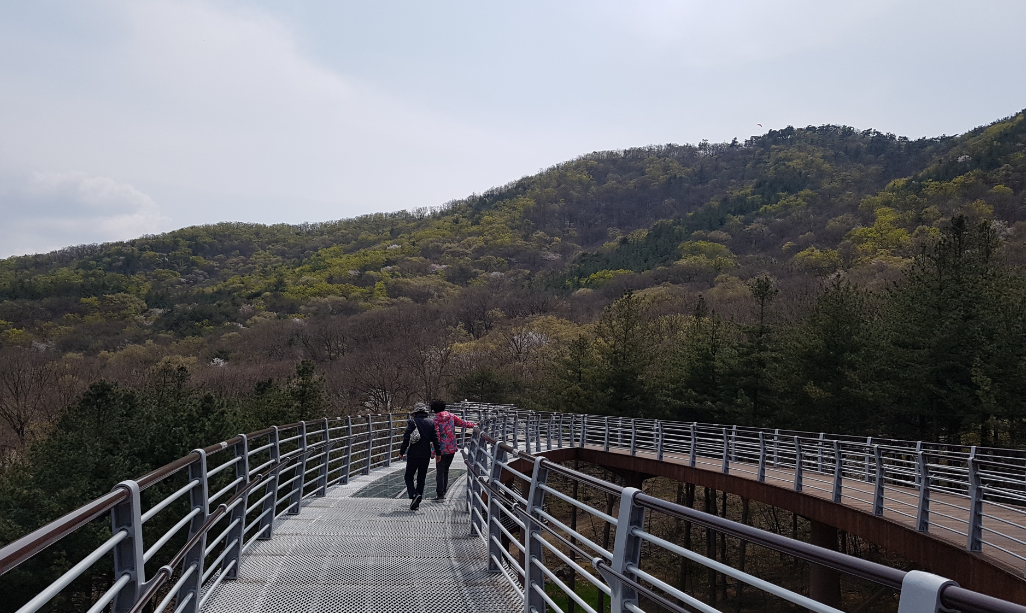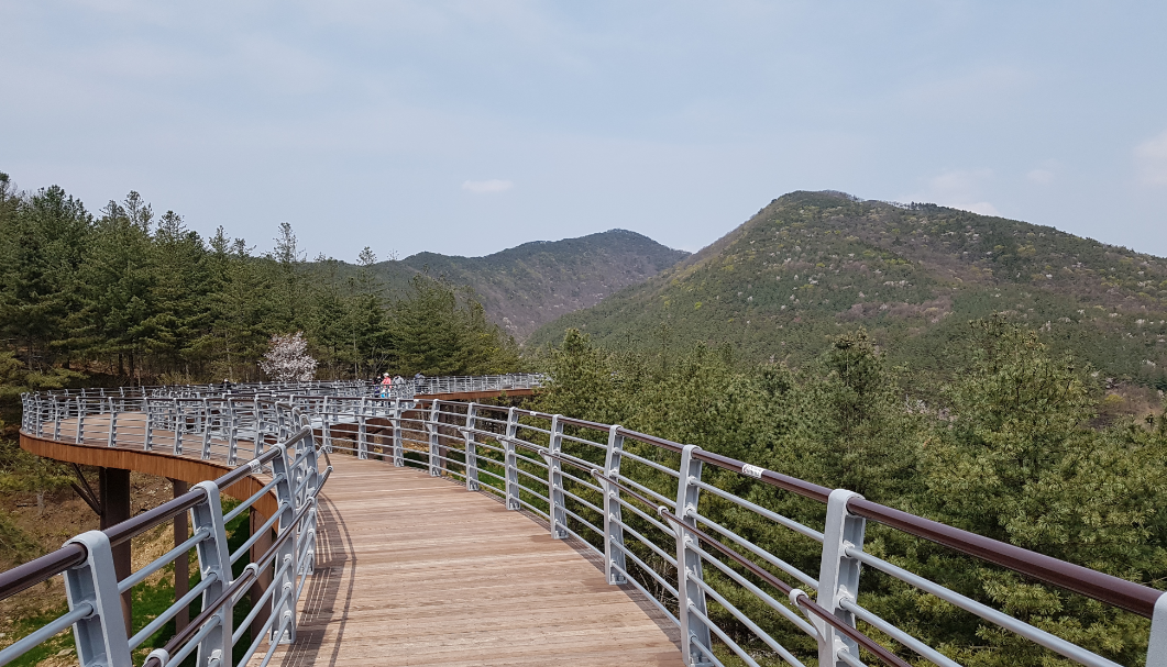 '성주산 숲 하늘길'로 이름 붙여진 이 시설은 총연장 174m에 높이 10m의 보도교로, 무궁화수목원을 한눈에 조망할 수 있도록 설계됐다.