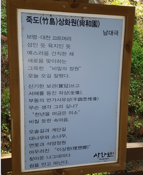 충청남도 보령시 남포면 남포방조제로 408-52의 섬, 죽도에는 한국식 전통정원 '상화원(尙和園)'이 자리하고 있다.