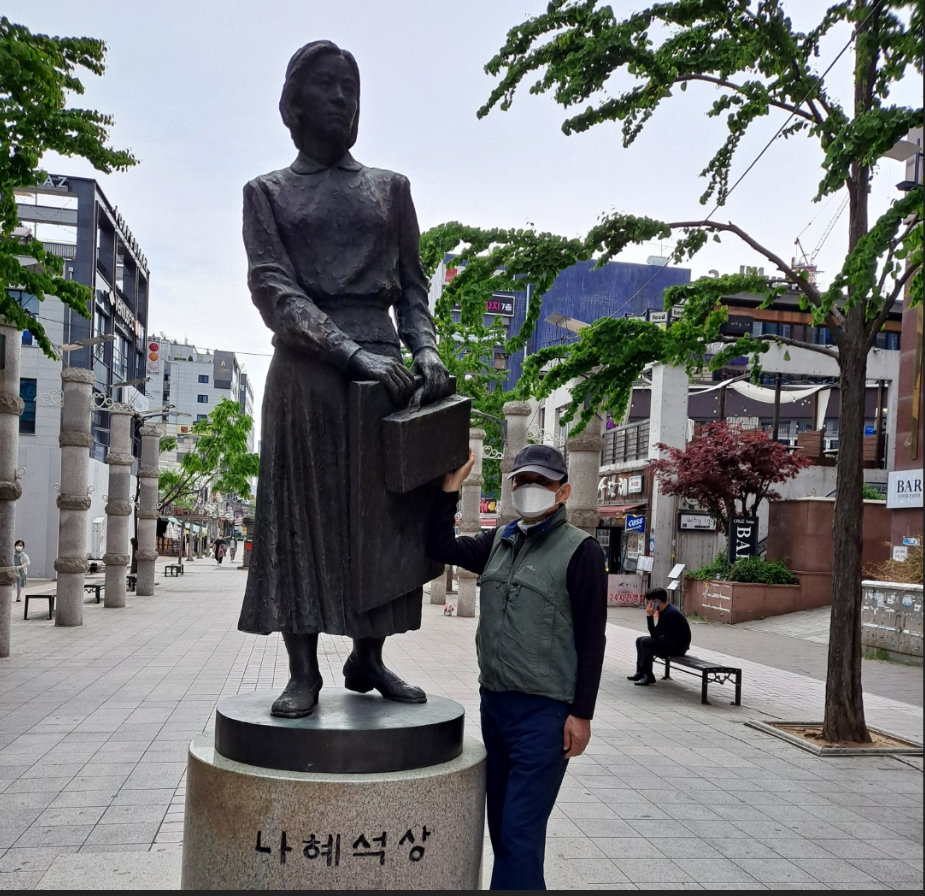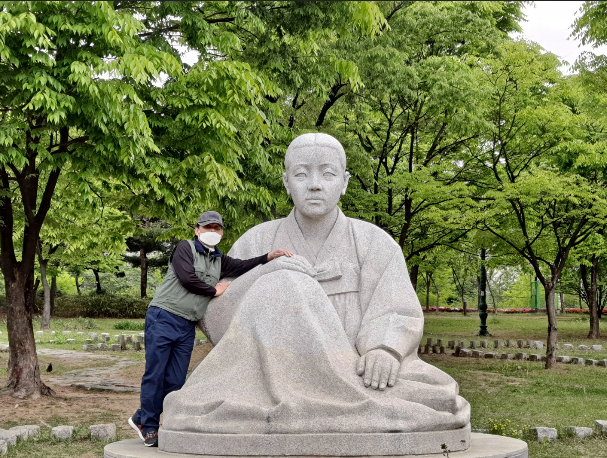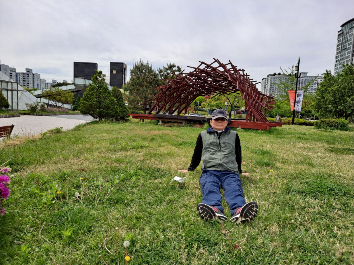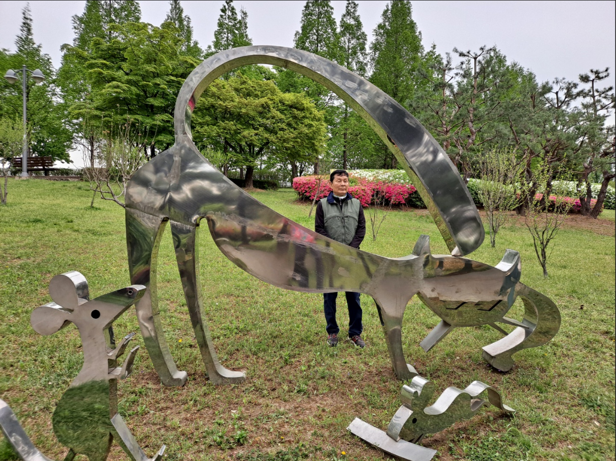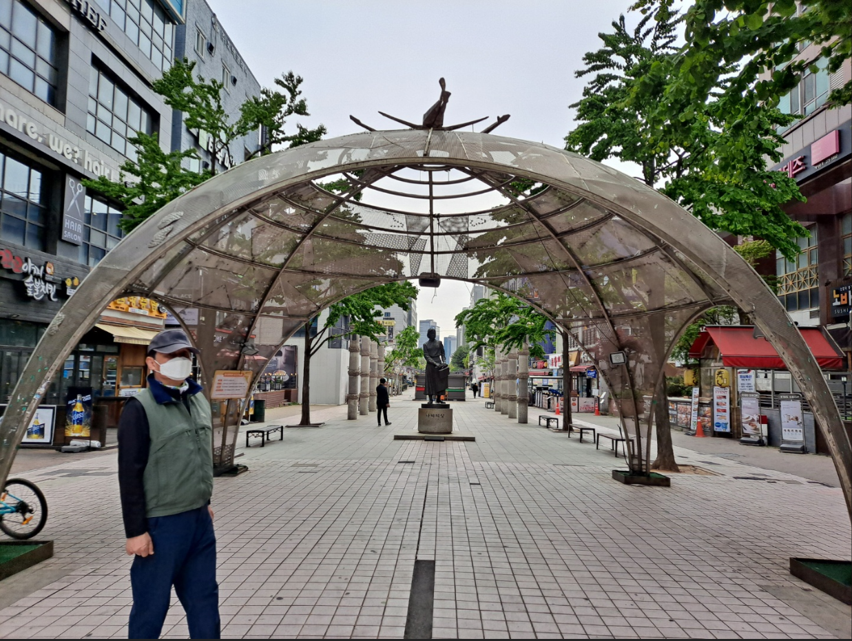 효원공원과 예술공원 사이에 위치한 극장가를 지나며, 아름다운 조각들이 그냥 지나칠 수 없어서 그 작품을 배경으로 사진을 남겼다.