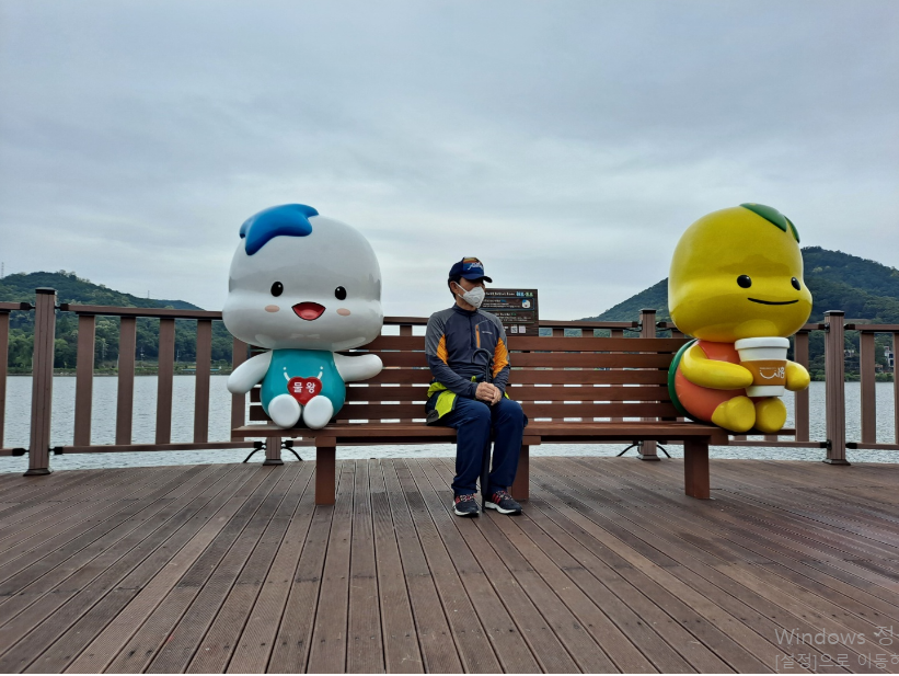 저수지를 한바퀴 돌아든 시간이 약 한시간쯤 되는거 같다. 데크 위에는 귀여운 캐릭터 의자가 있다. 아이들이 좋아할 거 같은 캐릭터라 나도 역시 동심을 흉내내며 아이들만의 마음으로 의자에 앉았다. 두 캐릭터가 물왕하트와 물왕사랑이라는 모습으로 미소를 짓고 있으니 함께 앉아 그 사랑을 맛보고 있다.