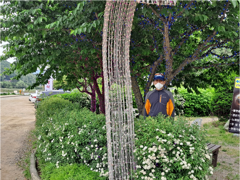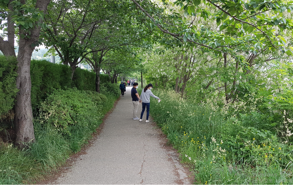 하얀 꽃이 어우러진 이팝나무와 흰꽃이 주렁주렁 매달린 아카시아를 잘 구분하지 못해서 피교육자로 엄격한 교육을 받고, 마침 오늘이 스승의 날이라며 그 기념으로 아카시아 나무아래서 또 찰칵~.