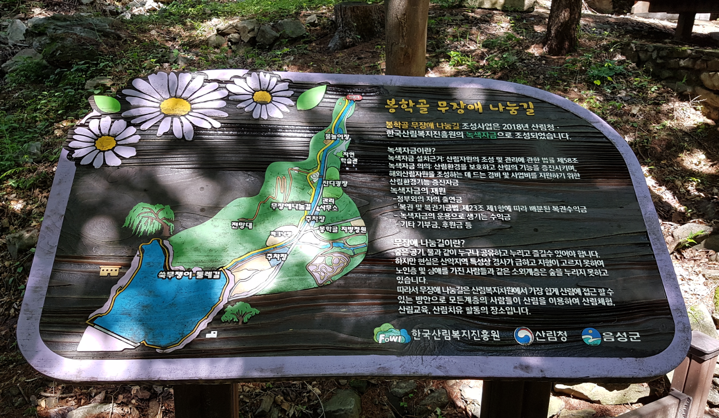 무장애 나눔길은 장애인, 임산부, 노약자, 어린이 등 보행 약자의 숲 접근성 강화를 위해 숲과 공원 내에 계단이나 단차를 제거하고 완만한 경사로를 이용해 무장애 산책로, 쉼터 등을 조성한 숲길이다.