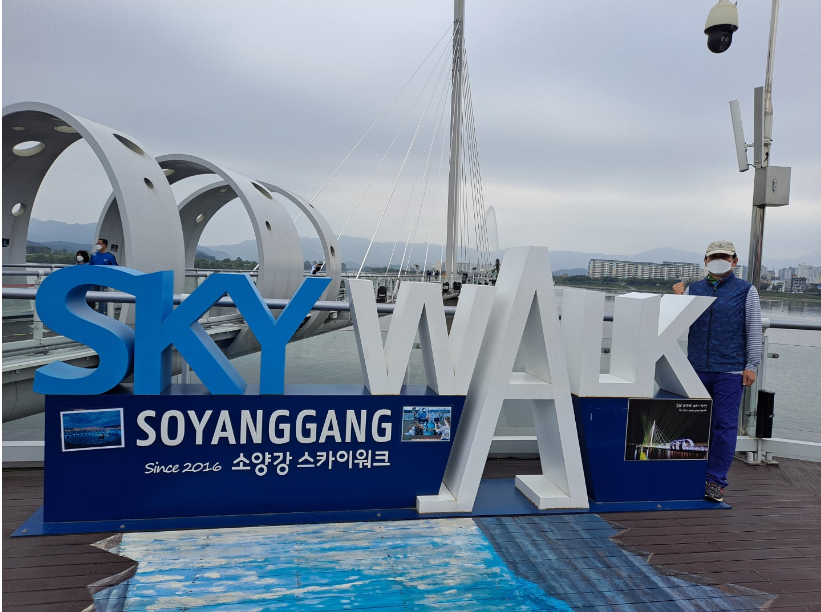 의암호 스카이워크는 입장료 2,000원이지만 나에겐 무료 이용 시설이라 잠시 쉬어가기에도 좋고 풍경 구경하기에도 너무 좋다. 신발위에 덧신을 신어 스카이워크로 올라가면 유리바닥 밑으로 펼쳐진 의암호를 만끽할 수 있다.