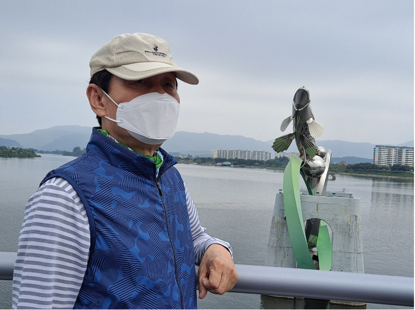 노을 한자락 헹궈내/ 삼악산 꼭대기에 널어놓고/ 누가 가져갈까봐/ 잔물결 속에 숨긴 채/ 조용히 흐른다.// 의암호 변에서 몸을 말리던 인어상이/ 깊숙이 하강하며/ 노을만큼 고운 말씀을/ 연신 토해낸다.// 동그랗게 번지는 파문은/ 그대의 파란 울부짖음인가/ 나의 아픈 고백인가.//