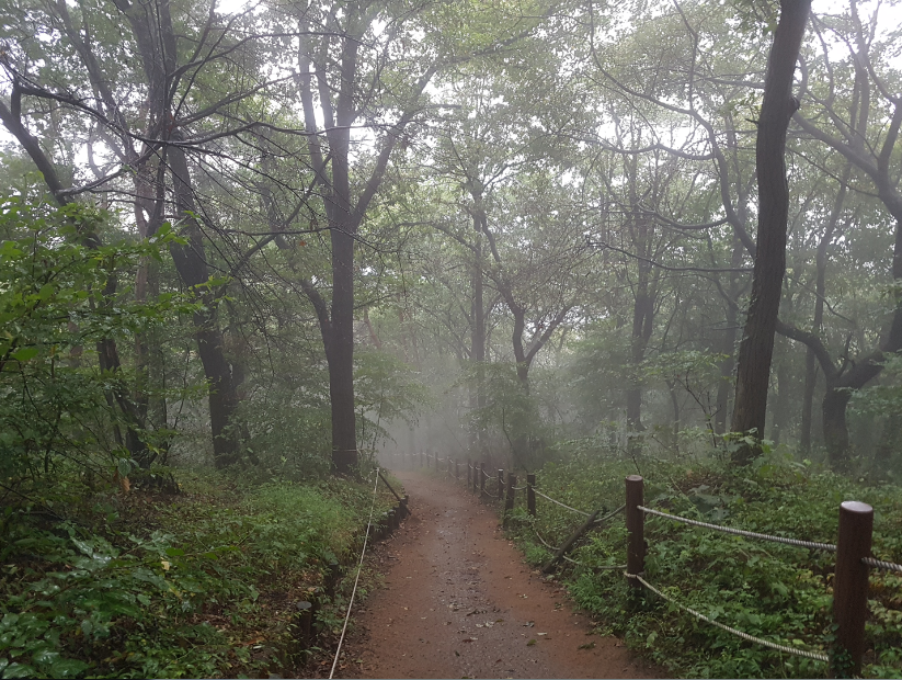 자욱한 안개가 숲길을 감싸고 있어서 포근한 느낌이 든다. 살아보니 세상살이가 맘먹기 달렸기로, 뭐 벌거 아닌데도 이런곳에 오면 그냥 세상살이에 지친 몸과 맘을 포근하게 힐링시켜 준다는 느낌은 또 뭘까?