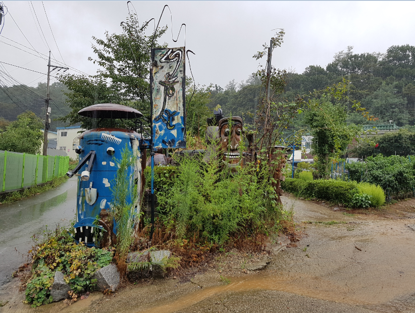 입구에서 부터 정크아트가 반겨준다. 올 때마다 조금씩 바뀌는 작품을 보니, 아마도 이곳에 정크아트를 하시는 분이 사시는 듯하다.