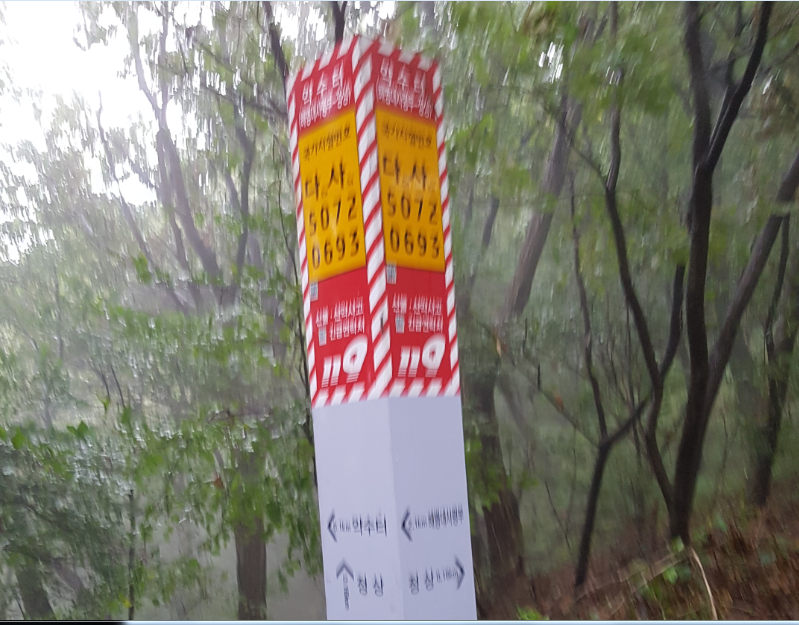 약수터가 있다. 비가 내리지 않는 날이라면 이 약수터에서 목을 축이고 올라갈 수도 있겠지만, 너무 많은 비가 내리는 날이라서 땀인지 빗물인지 분간 못할 뭔가가 몸을 적셔도 쉼을 모른채 그냥 올라갔다.