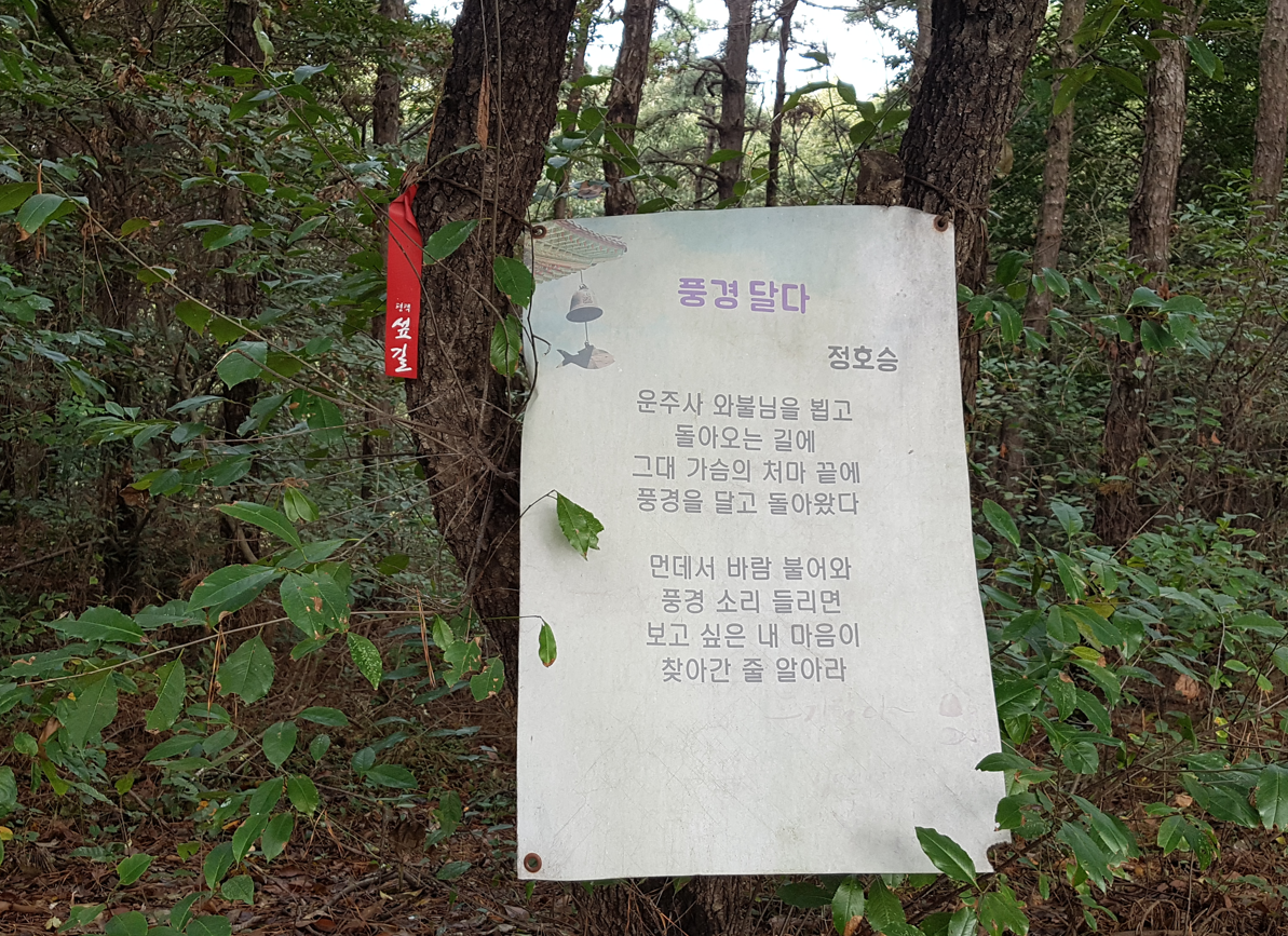 이길은 또 평택 섶길이란다. ‘섶길’이라는 낱말은 ‘섶’과 ’길‘의 합성어로 그 뜻은 저고리나 두루마기 등의 깃 아래에 달린 길쭉한 헝겊 조각 같은 좁다란 길을 말하며, 전국에 ’섶길‘이라는 신조어를 쓰는 곳이 평택뿐이란다. 정호승 시인의 풍경달다 라는 시가 걸려있다. 별다른 감흥이 없다.