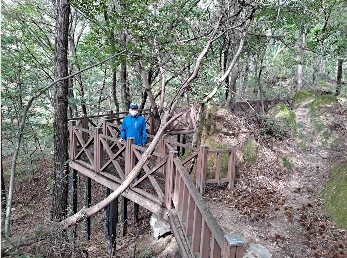 예술작품처럼 만들어 놓은 데크가 숲속에서 아름다움을 뽐내고 있다. 한마디로 멋지다.