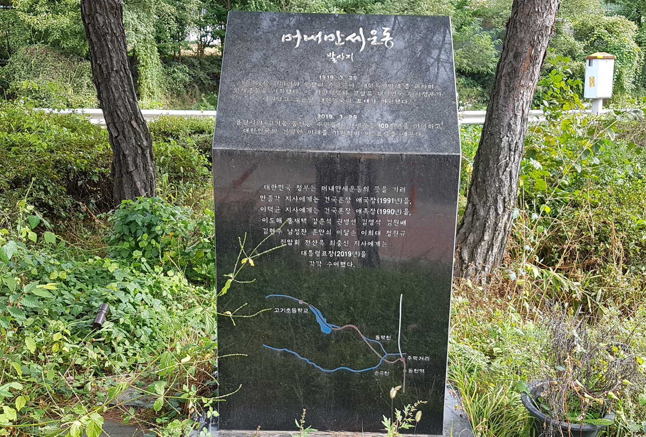 용인 3·29 머내만세운동은 일제강점기인 1919년 3월 29일 현재의 용인시와 기흥구 일대에서 수천 명의 주민이 참여해 태극기를 흔들고 '조선 독립 만세'를 외친 역사적인 항일운동이다. 머내는 용인시 수지구 동천동·고기동의 옛 지명이다. 역사적인 3·1운동의 발상지 가운데 한 곳이라는 자랑스러운 사실을 확인한 주민들은 머내만세운동에 참여했던 김원배 애국지사를 기리는 기념표지판을 설치했다.