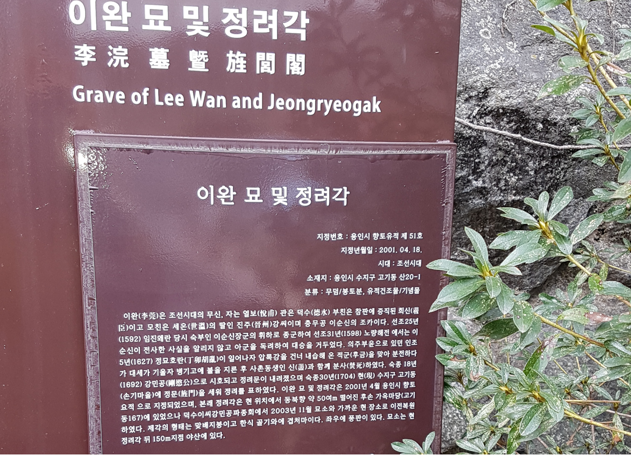 이완(李莞)은 임진왜란과 정묘호란 때 활약한 무신으로 충무공 이순신(李舜臣)의 조카이다. 임진왜란 때는 이순신을 도와 공을 세웠는데, 1598년(선조 31) 노량해전(露粱海戰)에서는 이순신의 전사를 알리지 않고 병사를 독려하여 대승을 거두는 데 기여하였다.