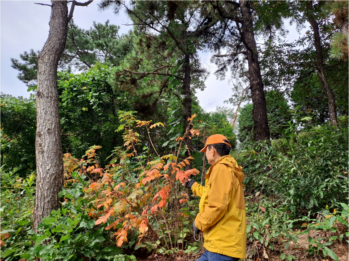 저수지를 돌아서 내려오는 길이 없어서 배수로 주변에 더듬거리며 작은 사잇길 헤치면서 마을로 내려와 농로를 걸으니 가을걷이에 바쁜 농부에게 미안한 마음이 된다.
