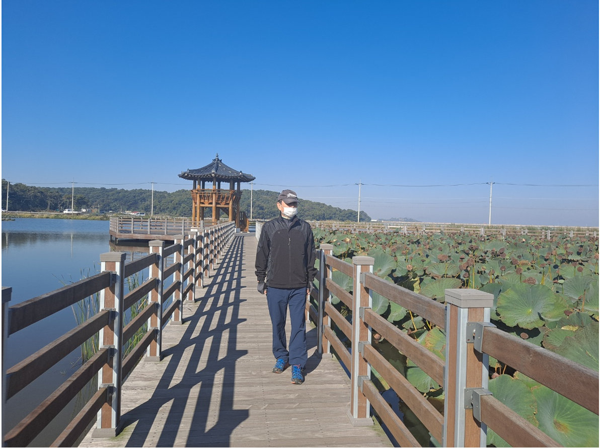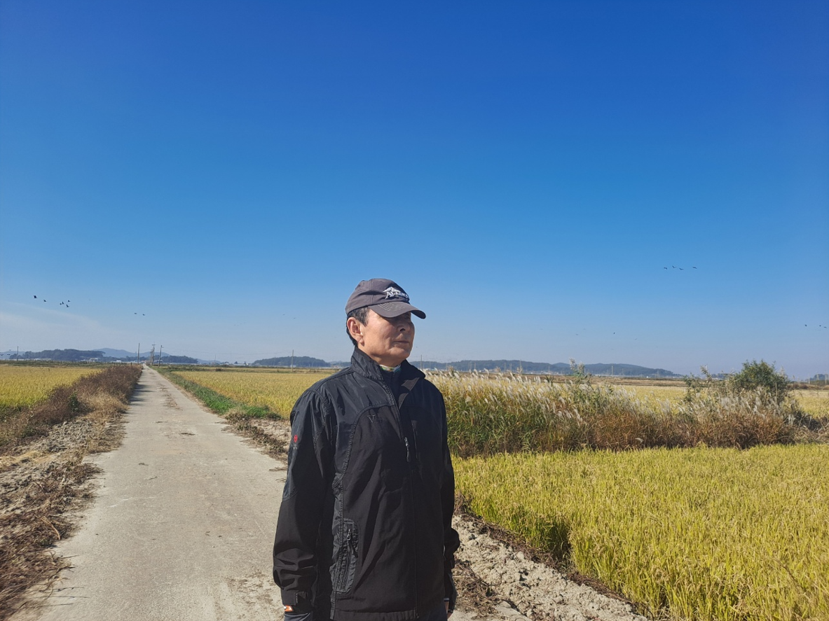어디에 있는 어떤 저수지이든 둘레길이 조성된 곳이든지 길이 없는 곳이든지 막론하고 나는 반드시 한바퀴를 돌아드는 버릇이 있다. 여기도 둑방길이 공사 중이라서 멀리로 돌아야하는 논두렁길로 약 1시간에 걸쳐 저수지를 한바퀴 돌았다. 작은 섬이지만 시원스럽게 펼쳐진 들판이 어린시절을 보낸 지평선 고향마을의 논배미를 보는 것처럼 정겹다.