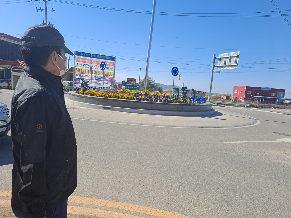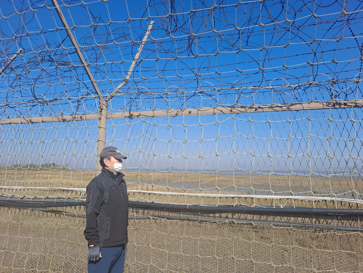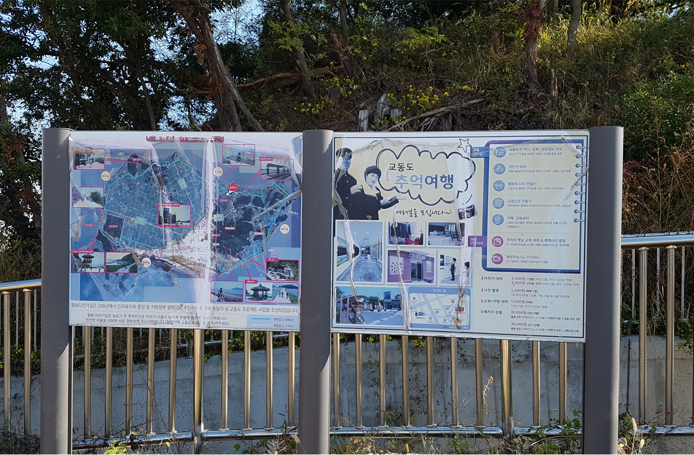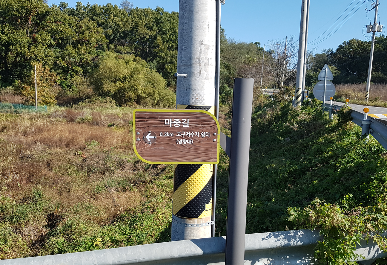 마중길이라는 표지판이 보인다. 교동도 망향대는 한국 전쟁 때 황해도 연백에서 피난 나와서 정착한 실향민들이 고향 땅을 바라보며 제사를 지낸 곳이다. 교동도 대룡리에서 승용차로 15분 거리에 있다. 전망대에 설치된 망원경을 통해 북녘땅 고향 마을 풍경을 볼 수 있단다.