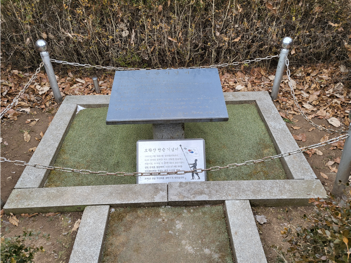 한국전쟁 당시 모락산을 포함한 수리산과 백운산 주변은 수도 서울을 탈환하기 위해 반드시 확보해야 하는 요충지였다. 1951년 1월, 한국군은 모락산 정상에서 중공군과 벌인 전투에서 승리했다. 이를 기리는 전승기념비가 1999년에 세워졌고, 이 부근에서 매년 전승기념비 참배 행사가 열린다. 국기봉 주변 쉼터에 한국전쟁 관련 사진들이 전시되고, 사람들이 모여 지난 시간에 대한 애도를 표한다.
