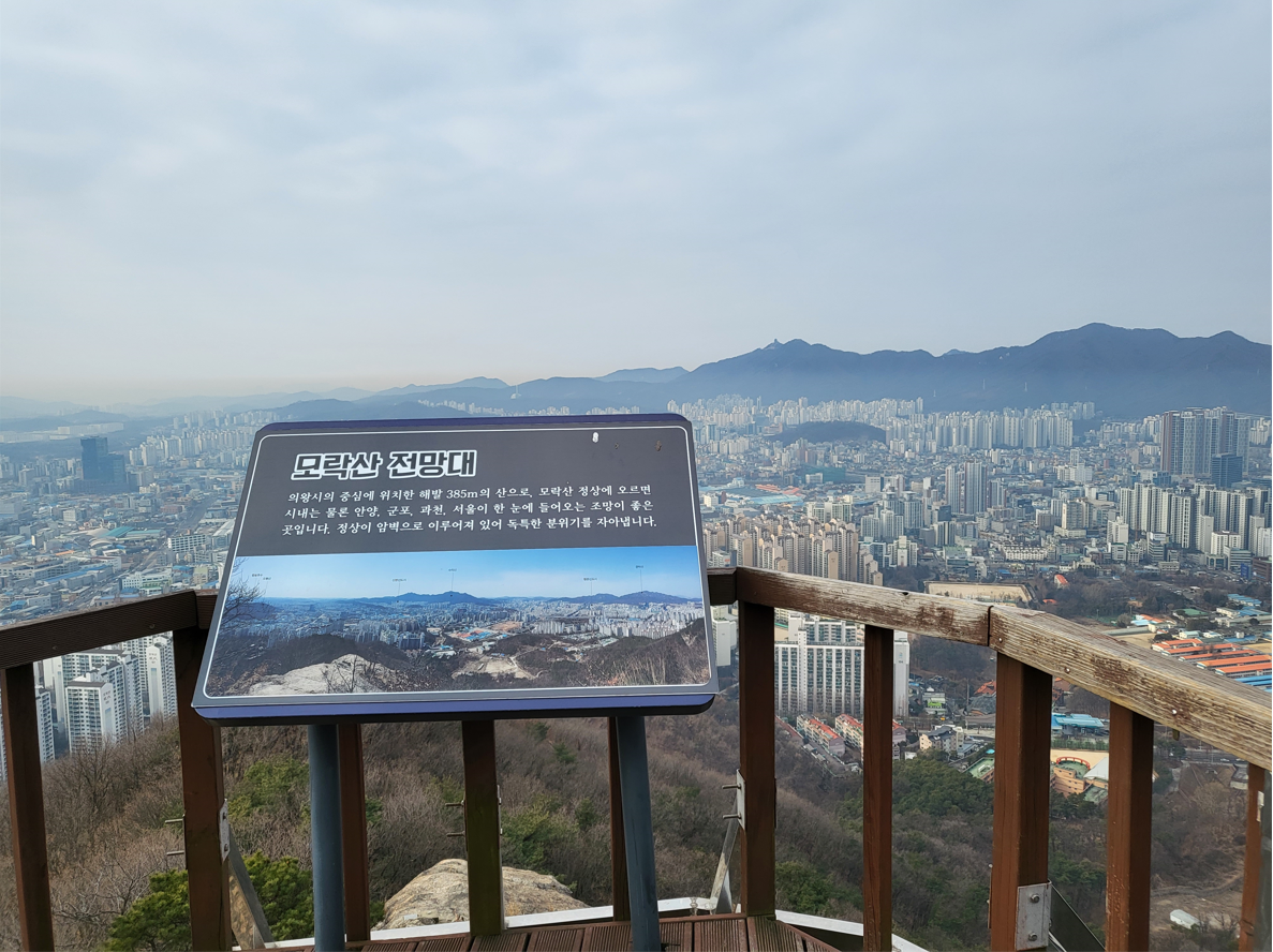 모락산 전망대에 오르면 의왕시내는 물론 안양, 군포, 과천, 서울이 한눈에 들어오는 조망이 아주 좋은 곳이다.