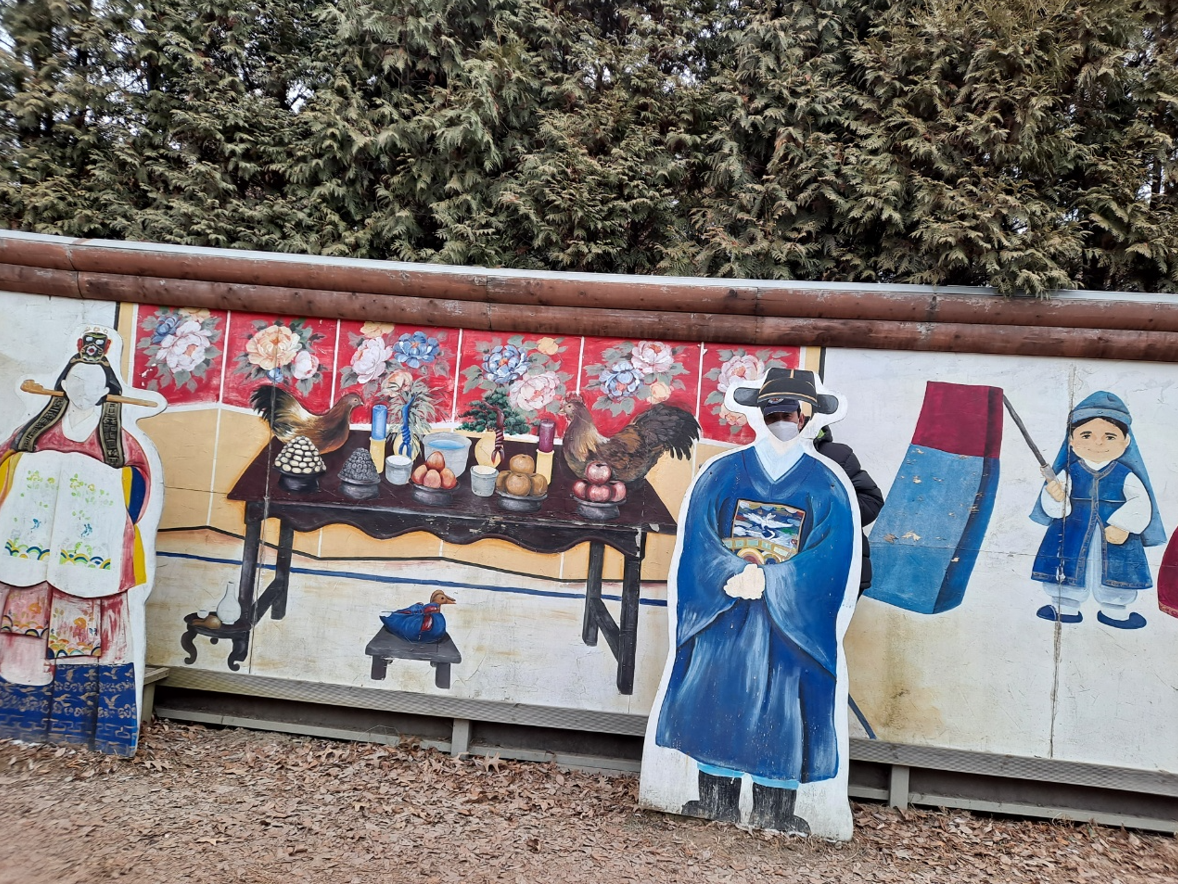 골프장 둘레길에는 풍속화와 수채화, 유화, 자유 작품(사진 포함) 등 127점의 작품을 전시 가능한 갤러리를 당정역에서 의왕역 방향으로 1㎞ 지점, 길이 50m 규모로 조성하여 걷는 길이 오묘하고도 아기자기하게 만들었다. 여긴 포토존으로 옛날의 전통 결혼식 장면을 만들어 놓았는데 너무 비좁아서 얼굴만 겨우 디밀고 흔적없는 사진을 찍었다는 이야기란다.