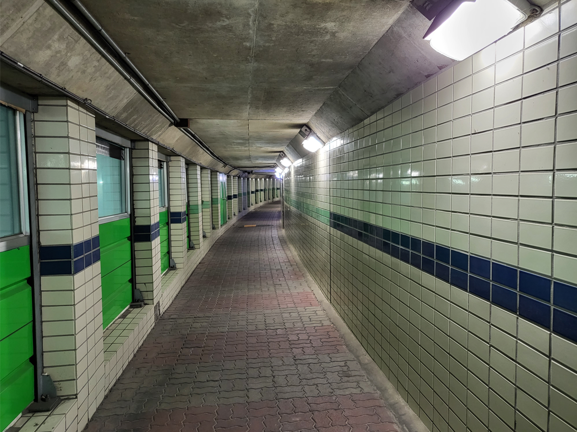 지하철 1호선의 철길아래로 만들어진 호젓한 지하보도는 어린시절에는 자주 만나는 길이었는데, 요즘은 만나기 어려운길이라서 참으로 오랜만에 걸어보는 곳이다. 걷는 사람의 흔적이 거의 보이지 않을만큼 조용하게 한가한 길이다. 밝게 켜진 형광등 조명아래 걷는 길이 도심을 걷던 오래된 어린날의 추억을 아련한 기억으로 샘솟게 만들어 준다.