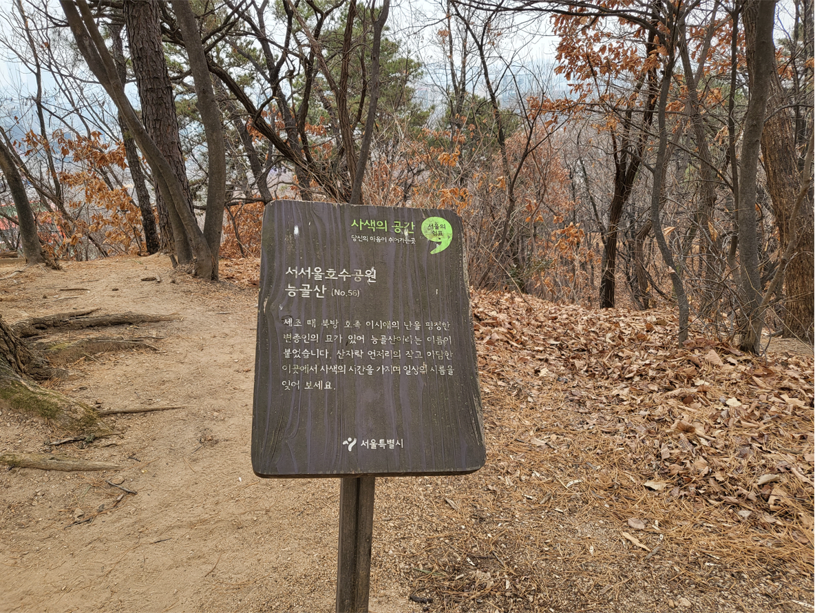 능골산 산책 중 쉴 수 있는 작은 쉼터 8개소, 정자 쉼터 2개소를 설치하고, 야간에도 산책할 수 있도록 태양광 조명등 580개도 달았다. 식목행사에서는 지역주민들이 철쭉류 2만주, 사철나무 4,330주, 산벚나무 50주를 심었단다. 구청에서는 만들고 지역주민은 가꾸고... 이렇게 아름다운 산책로가 조성될 수 있음에 산책로를 찾은 나는 무한 감사를 드린다.