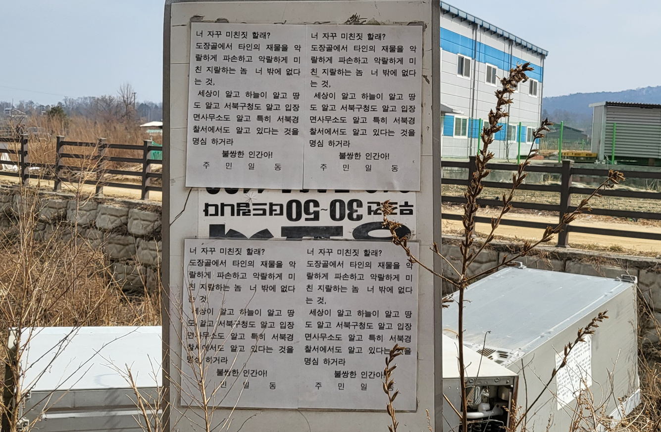 다만, 예전에 낚시터라서 그런지 모르겠지만 저수지 주변에 쓰레기들이 보이고, 저수지로 흘러드는 개천 등 주변 환경이 미덥지 못한 것인지 그냥 내다버린 냉장고의 잔해가 나뒹굴고 있으며, 이곳엔 이런 찌질한 내용의 안내문구도 결려있다.