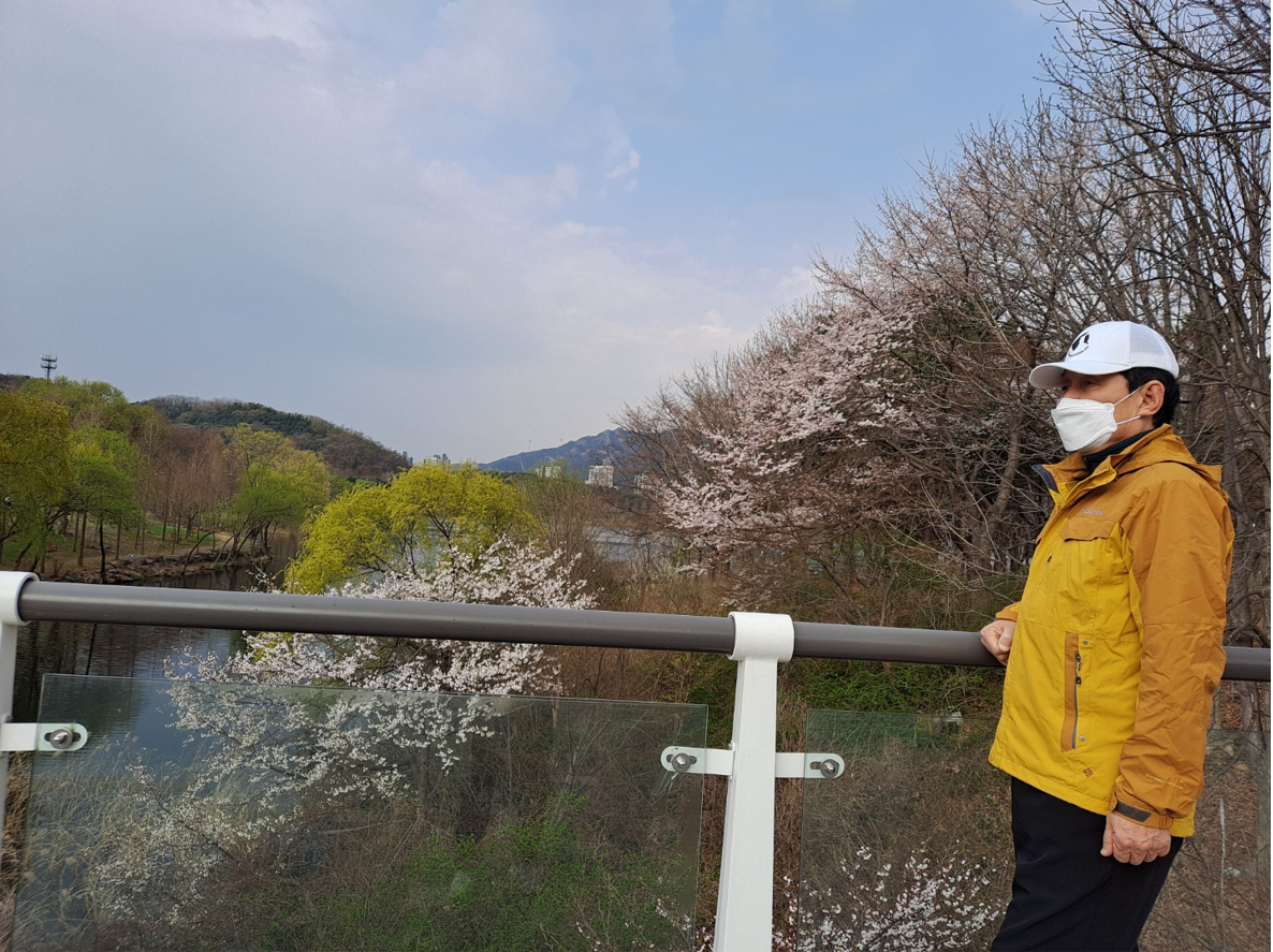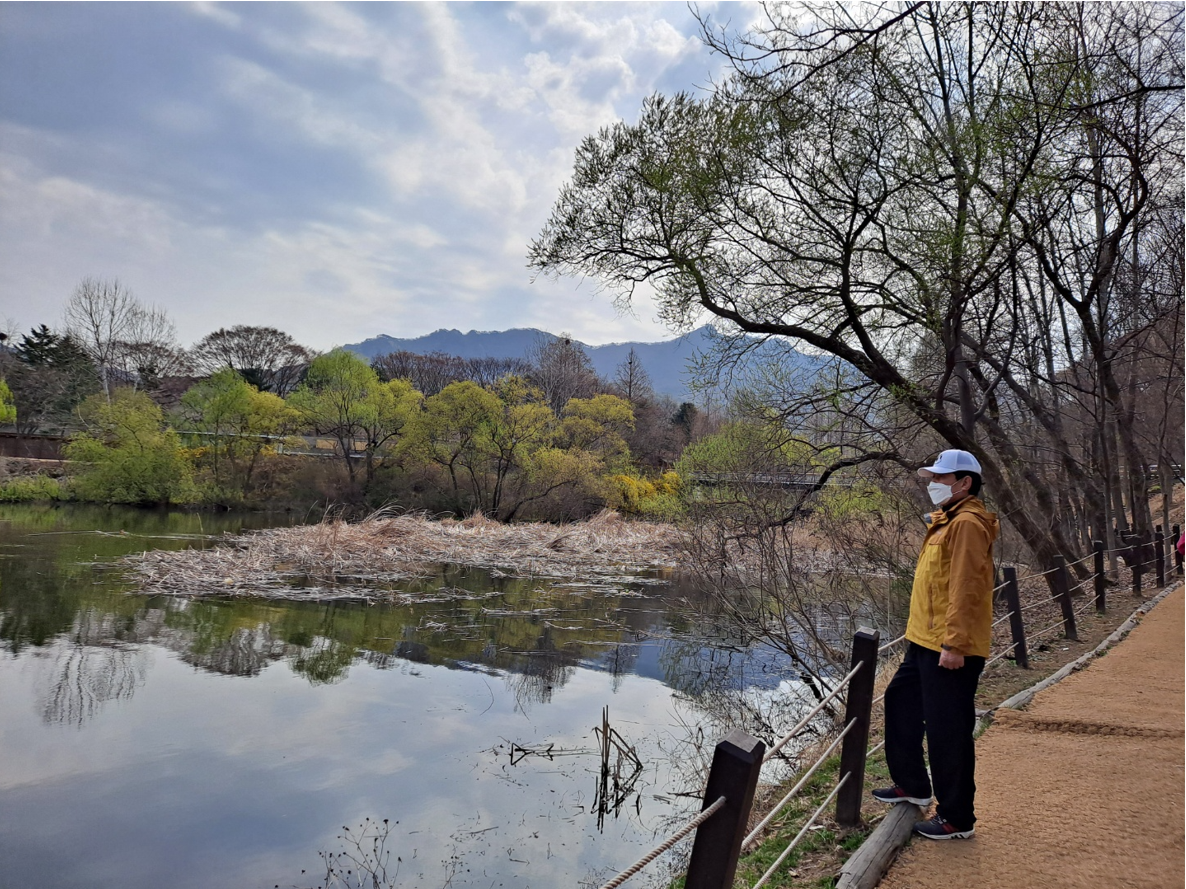 봄에는 첫 구간의 ‘선녀못 있는 숲’에서 ‘아까시나무숲’까지가 좋다. 동네 아낙들의 빨래터였던 선녀못은 밤에는 남몰래 몸을 씻는 곳이었다. 정자와 벤치가 있어 쉬어가기 좋다. 아까시나무숲은 5월에 걸으면 좋겠다. 그 달콤한 향을 어찌 그냥 스쳐 지나랴. 맑고 잔잔한 호수위에 그냥 드러누운 나무를 바라보며 저 멀리로 보이는 관악산의 모습이 너무 정겹다.