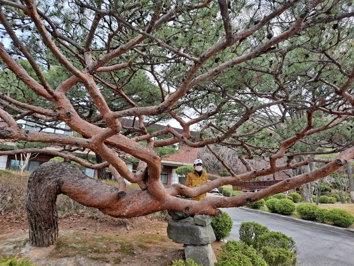 소나무 한그루도 그냥 예술작품이다. 세월을 어떻게 지냈으면 이런 모습이 될까? 나무 가지들의 어울림과 검고 불은 색감의 조화 그리고 한 곳으로 치우치지 않은 균형미까지 모두가 감탄스럽다. 이런 자태라서 소나무는 모든 나무(木)의 윗자리(公)에 있어 송(松)이라 했다는 그 단어가 문득 떠오른다.