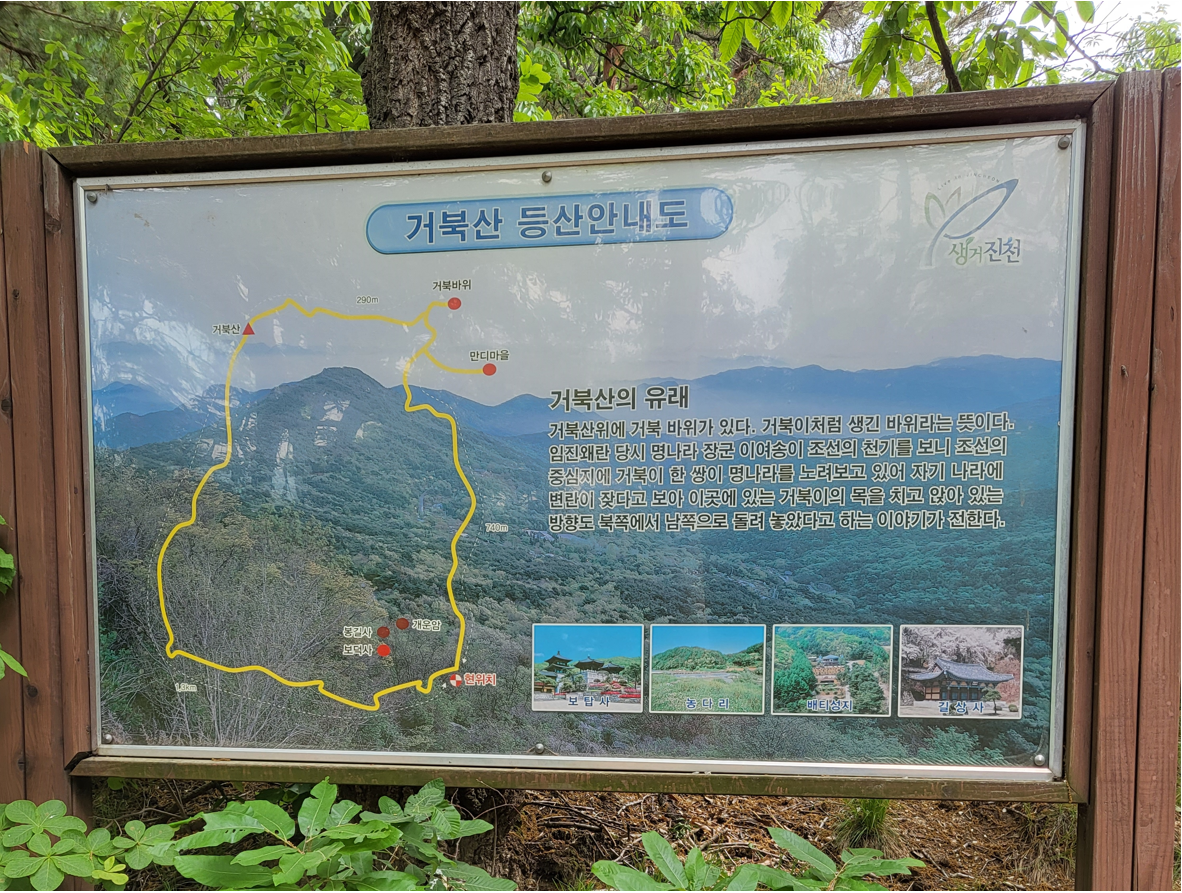 이 산의 이름인 거북산처럼, 정상을 향하여 오르는 곳마다 작은 구릉을 만나면 바위들이 버티고 있으며, 이 바위들의 모습이 거북을 닮아있어 거북바위란다. 거북이는 우둔해서 토끼 꾀에 잘 속아 넘어가기는 하지만, 끈기가 있고 진득해서 끝까지 경주하면 이긴다는 우리 설화 속의 거북의 이미지처럼 그렇게 진득하게 돌아들면 된다.
