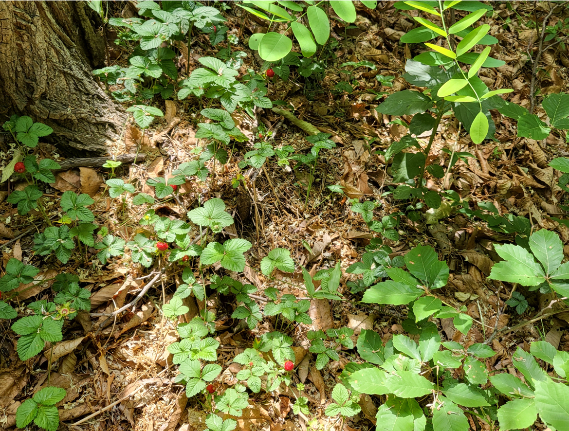 어린시절의 추억을 불러내는 뱀딸기다. 뱀딸기는 장미과에 속하는 여러해살이풀이다. 지매(地苺)라고도 한다. 높이는 10~15cm이다. 남아시아와 동아시아 원산이며, 세계 각지에서 관상 식물로 심는다. 풀밭이나 숲 가장자리에서 자란다. 잎은 어긋나며 3출엽이다. 꽃은 4~5월에 노랗게 피는데, 잎겨드랑이에서 나오는 길쭉한 꽃자루에 한 개씩 달린다. 열매는 딸기와 같은 수과로 둥글고 지름 1cm 정도이다. 열매는 먹을 수 있는데 독성이 있어 많이 먹으면 배탈이 날 수 있다.