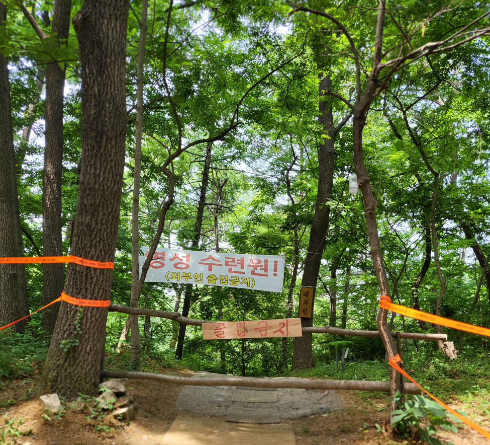 고갯길에서 만난 영성수련원 태화원이라는데, 굳게 닫힌 입구에 출입금지라고 붉은 글자로 막아 닫혀 있어서 접근하기가 어렵다. 일반인들은 영성 수련의 기회조차 수월하지 않구나... 그런 부질없는 생각을 머릿속에 굴리면서 그냥 지나간다.