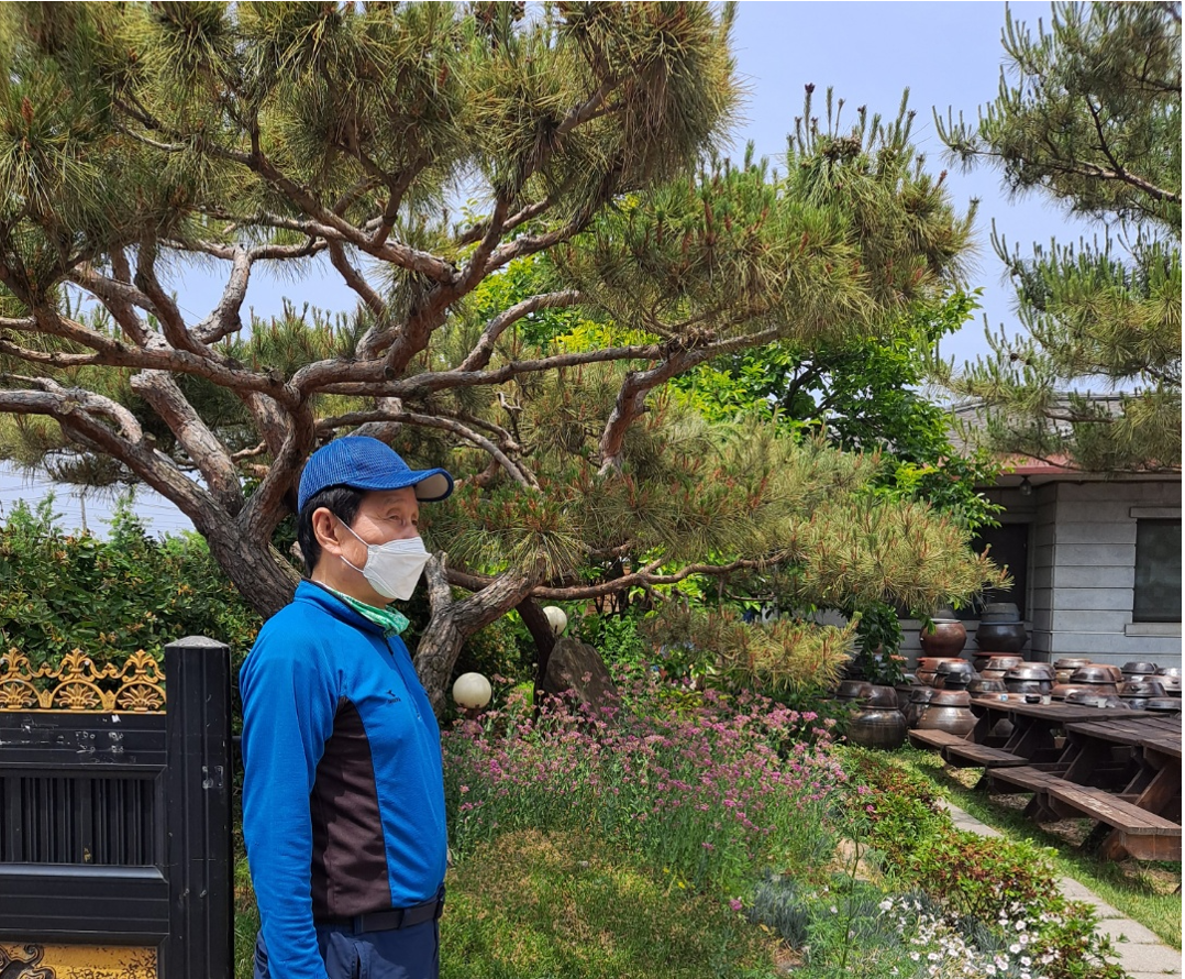 배고픔을 채우기 위해 아산 중고등학교 정문 바로 앞에 있는 소나무 한정식 집을 찾았다. 이렇게 항아리가 즐비한 장독대를 만나니 옛 시절이 그립게 생각난다. 기다리는 시간이 길었다며 후식도 마당까지 접시째로 들고 나와서 먹어야만 했고, 푸짐한 음식으로 배부름에 남겨야 했던 솥밥도 들고 가라며 포장해 주는 충청도 인심 덕택에 고향집에 온 것같은 착각에 젖는다. 이렇게 향토색 짙은 고향의 마당에 앉아 잃어버린 유년의 세월을 반추하는 꼰대의 아름다운 어린시절을 생각한다.