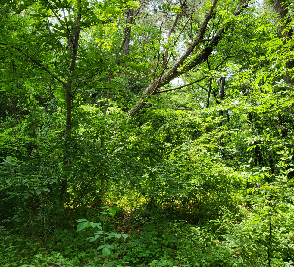 걷다보니 군데군데 이렇게 타이어로 표시해 놓은 뭔가의 의미가 있음직한 구역이 나타난다. 아마도 이곳은 수목장을 한 그런 무덤이 아닐까 유추해 본다. 이렇게 좋은 명당에 숲길을 걷는 사람들이 마구 밟고 다니면 안되기에 이렇게 표시를 해 놓은게 아닐까....