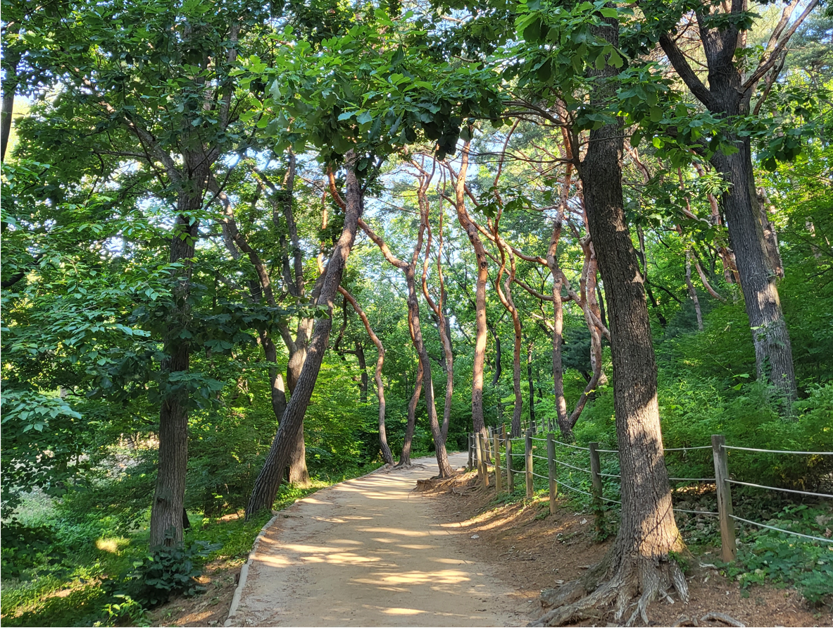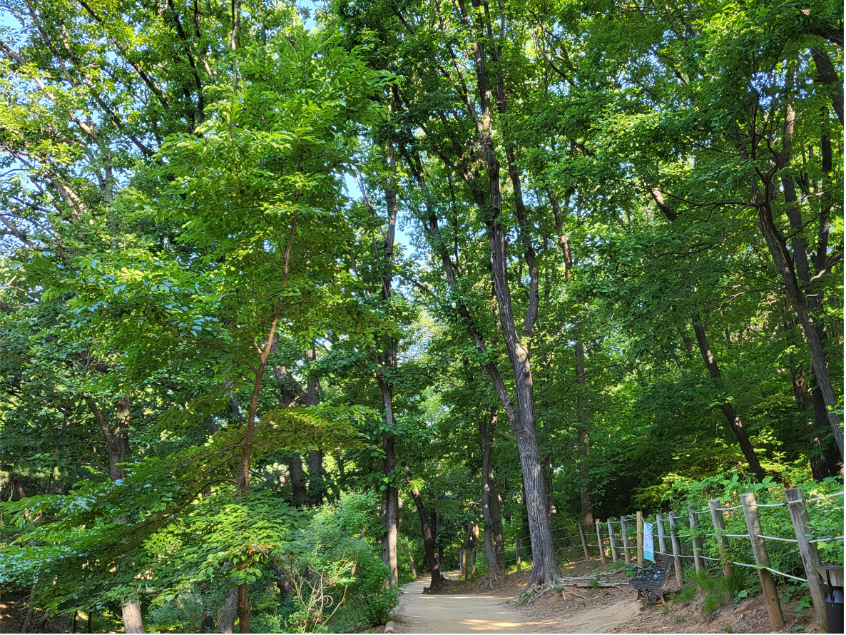입구 매표소에서 부터 오뉴월의 무더위가 기를 펼 수 없을만큼 아름드리 나무들이 짙은 그늘을 드리운 오솔길을 따라 걷는다. 수도 한가운데인 도심의 서울에도, 그것도 강남 한복판에 이런 근린공원같은 한가롭고 여유로운 숲길이 있다는게 믿기지 않을 만큼 쾌적하게 맑은 공기가 온 몸을 감싸고 돈다.