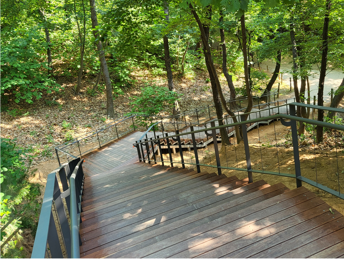 정릉에서 선릉으로 돌아서 올라가는 언덕길에 계단으로 만든 데크가 흡사 명인의 작품인 듯 명품으로 느껴진다. 꼼꼼하고 아담하며 오르막에 부담을 전혀 느끼지 않도록 천천히 돌아가도록 부드러운 길을 낸 그 지혜로움에 관람객은 오르내리면서 자연스럽게 감탄하며 문화재 사랑에 그저 감사한다.