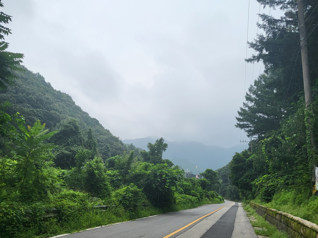 산에서 흐르는 물이라서 그런지 투명하게 맑은 계곡물이 풍요롭게 흐른다. 천진암 계곡에는 이렇게 자동차가 드나들 수 있을만큼 넓은 교량이 곳곳에 설치되어 있어서 야영객들에게 별로 불편함이 없을 것 같다. 걷는 길 내내 푸른 숲이 우거지고 길가에는 카페나 식당들이 줄서듯이 도열해 있어서 언제라도 목마르고 배고플 때면 찾아들 수 있어서 좋았다.
