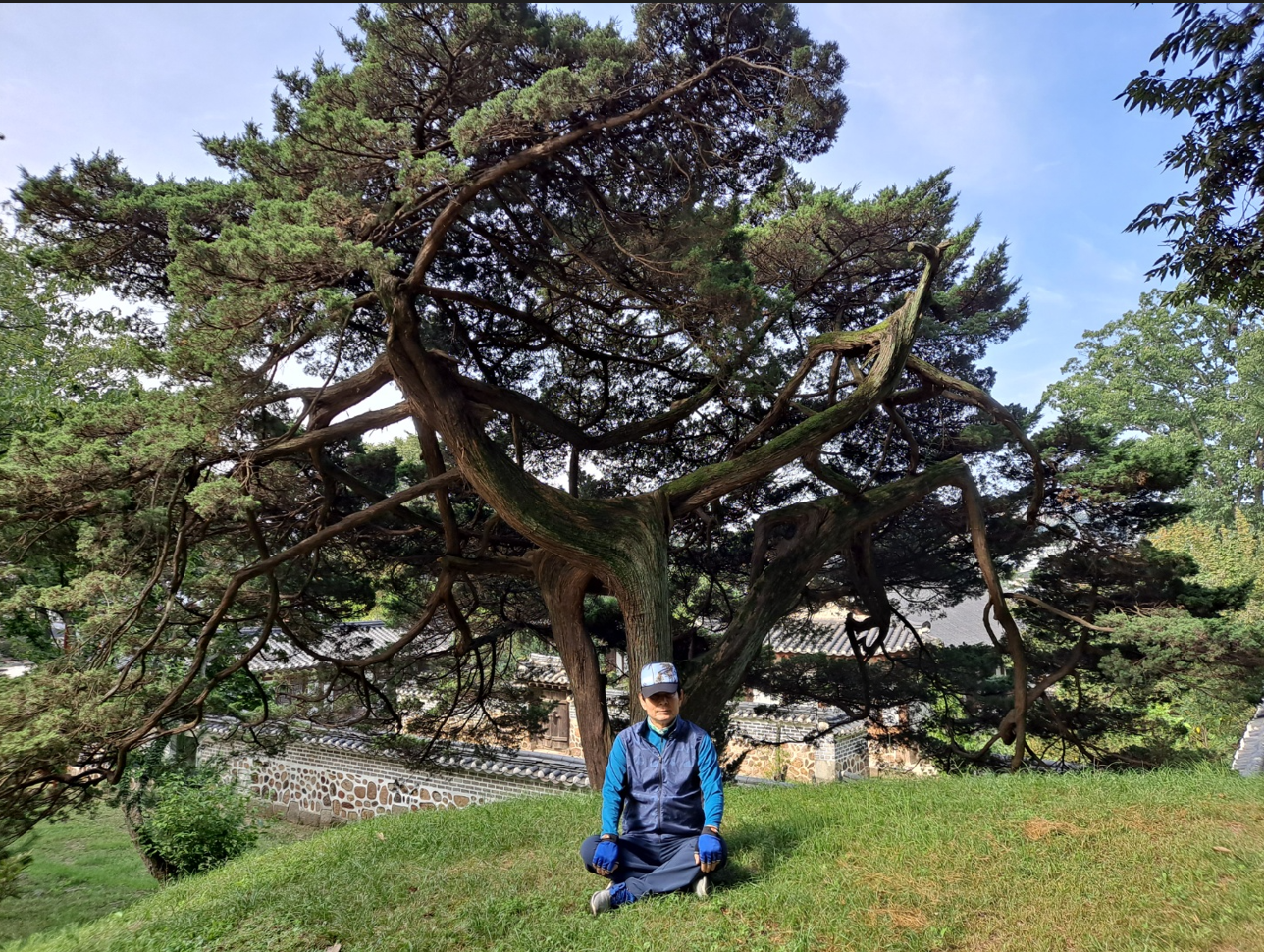 산책로의 소나무(korean red pine)는 우리나라를 대표하는 나무로 전국 산야에 자라는 상록 침엽수다. 하늘을 향하여 곧게 자란 소나무들 사이로 처진소나무(for. pendula)는 가지가 가늘고 길어서 아래로 늘어진 형태이다. 또한 반송(盤松:for. multicaulis)은 줄기 밑부분에서 굵은 곁가지가 많이 갈라지며 수형이 우산처럼 다북하다. 의자처럼 만들어진 소나무가 포토존이라 여기며 단정하고 모범적인 포즈로 찰칵~.