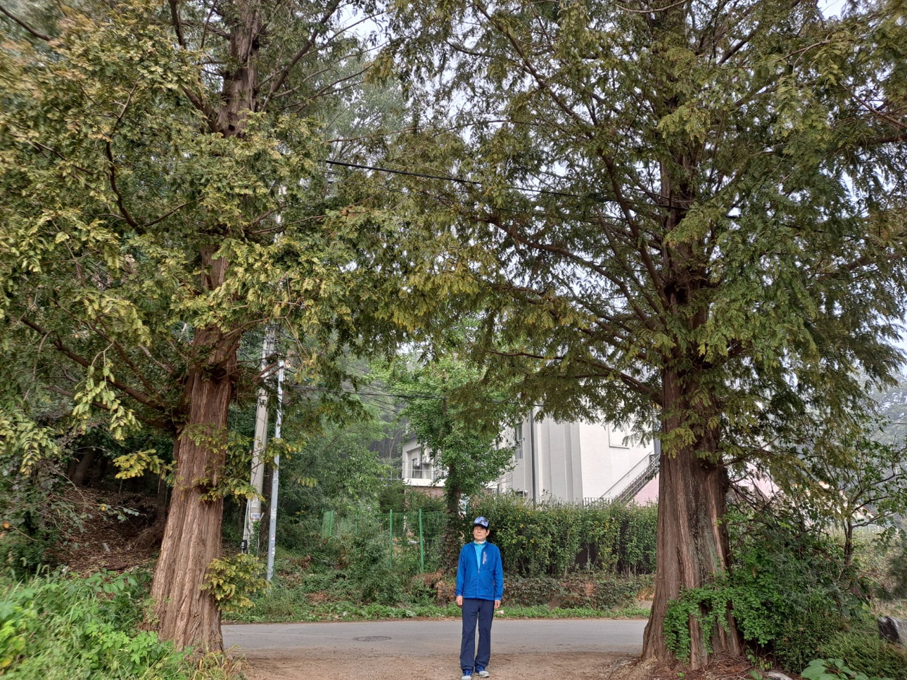 지도상에 A로 표시된 기천저수지를 찾아서 나서니 안개가 조금은 걷힌다. 여기는 전원주택지인가보다. 구릉위에 지은 2층주택에는 우리나라의 태극기와 미국 국기인 성조기를 나란히 걸어 놓은 집도 참 멋스럽다. 어디에서 무엇을 하며 살아가든지 자기네 모국을 생각하는 마음이 그렇게 국기를 내건 모습으로 나타난거 같아서 그냥 평범한 시민이 보기에도 그 나라사랑하는 마음이 너무 좋았다.