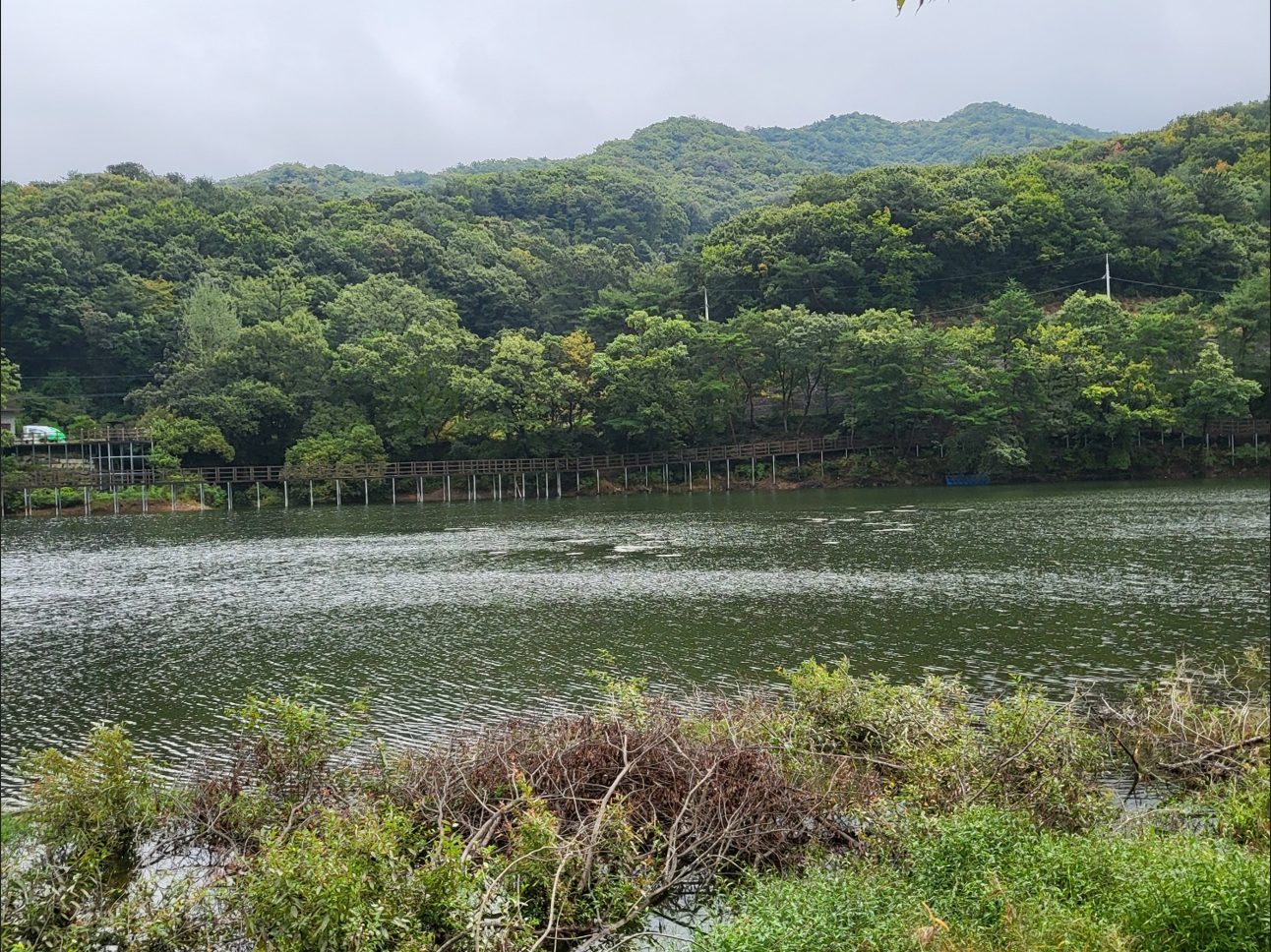 하늘이 처음 열린 날(開天節), 가을비가 추적추적 내리는 질퍽한 지방도를 아침 일찍 내달려 천흥저수지 둘레길로 한걸음에 찾아갔다. 집에서 출발할 때 퍼붓던 빗줄기가 신기하게도 천안에 도착하니 가늘게 내리던 가랑비 조차도 그치고 하늘도 맑아서 시월의 호숫가를 낭만의 걷기 좋은 둘레길로 우릴 안내한다.
