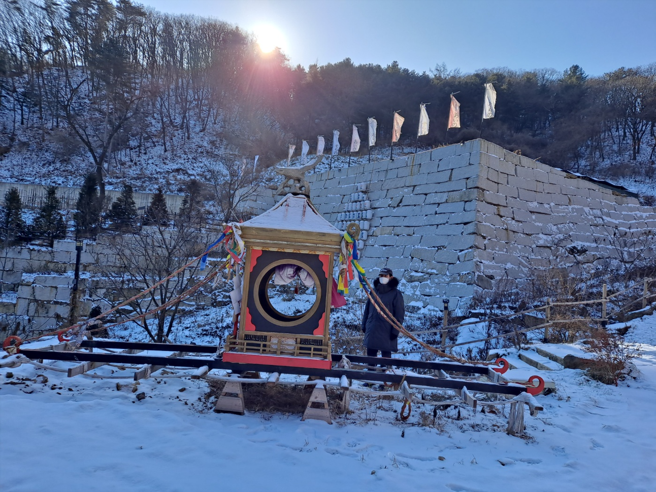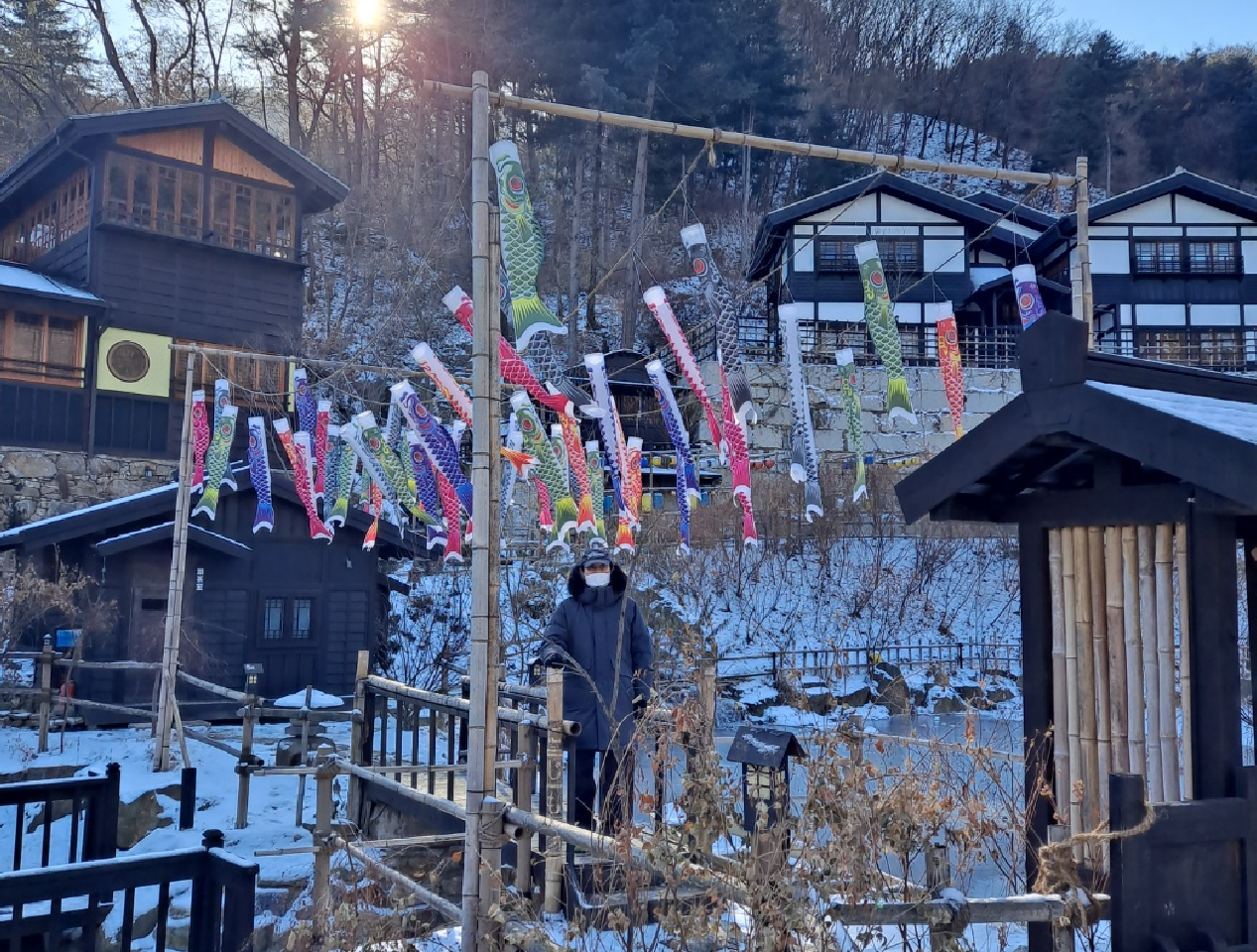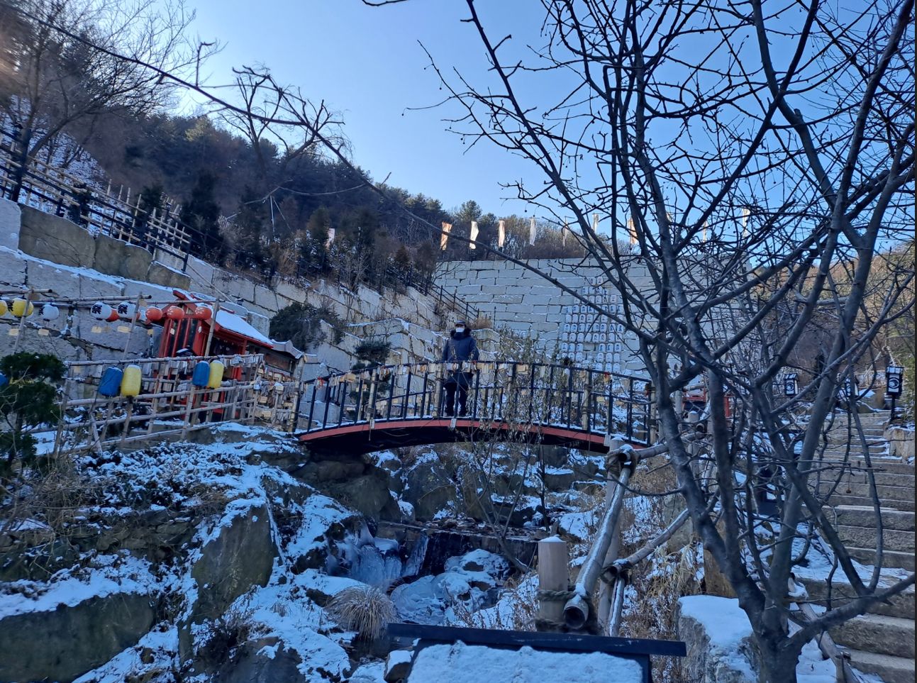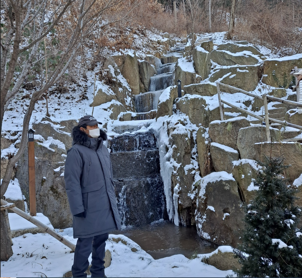 영하 십도이하를 밑도는 한겨울 혹한의 추위임에도 얼어 붙지 않고 졸졸졸 흐르는 갸냘픈 물줄기가 신비롭다. 혹시나 온천물일지도 모른다는 생각에 손가락으로 물을 만져 봤지만, 혹시나는 언제나 그렇듯 역시나 였다.